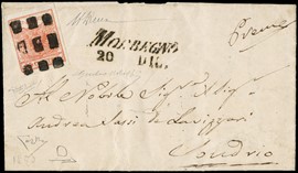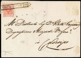 1850 - 15c rosso I tipo annullato con muto del IV tipo da 'MORBEGNO 20 DIC.' 1850 per Sondrio. Rarissimo, firme [..]