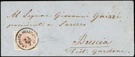 1850 - 15c rosso vermiglio chiaro, carta a macchina, annullato 'I.R.POSTA MILITARE 25/7' su lettera per Sarezzo, [..]