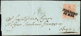 1850 - 15c rosso vermiglio III tipo carta a macchina da 'PANDINO 10 MAR.' (SI) a Brescia. CF Bottacchi (Sassone [..]