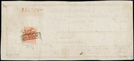 1850 - 15c rosso carta a macchina annullato 'BASSANO' (R.s.d.) al verso di ricevuta di ritorno di raccomandata [..]