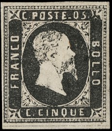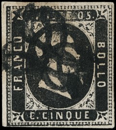 1851 - I emissione, i tre valori della serie: 5c n, 1851