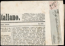 1851 - Mercurio (1,50 Lire) rosa salmone, carta sottile, su quotidiano di Vienna 'Il Corriere Italiano' da 'UDINE [..]