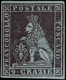 1851 - 9cr viola bruno scurissimo su carta azzurra, nuovo con piena gomma. Margini bianchi su tutti i lati. Splendido. [..]