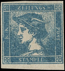1851 - Mercurio (3 cent) azzurro grigio I tipo, ca, 1851