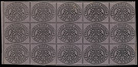 1852 - 1/2 b violetto, blocco di 15. Splendido, du, 1852