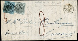 1852 - 1b grigio verdastro e 7b azzurro, su letter, 1852