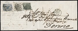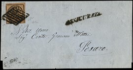 1852 - 3b bruno AdF su 'ASSICURATA' da 'URBINO' a Pesaro (Sassone 4Aa - Euro -)