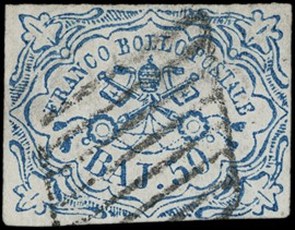 1852 - 50b azzurro annullato a griglia. Sigla Fiec, 1852