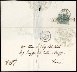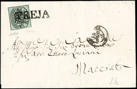 1852 - 1b verde grigiastro da 'TREJA' (SD) a Macerata (Sassone 2+pt.7 - Euro 850)