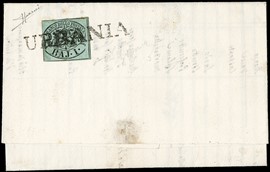 1852 - 1b verde grigiastro da 'URBANIA' (SD) a Pio, 1852