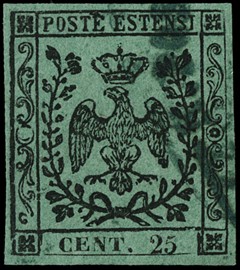 1852 - 40c celeste, annullato con griglietta di Modena. Raro e plendido . Firma Em.Diena, CF Bottacchi (Sassone [..]
