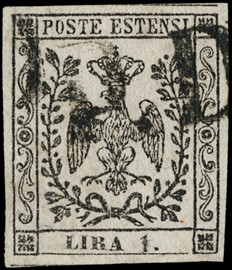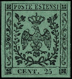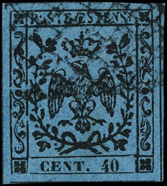 1852 - 40c celeste vivo da 'MODENA 22 AGO 52' a Tr, 1858