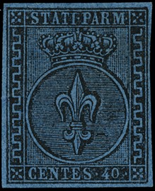 1852 - 40c azzurro, esemplare recuperato da precedente affrancatura e riutilizzato in frode da 'PARMA 27 FEBBRAIO' [..]