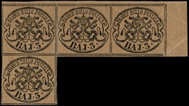 1852 - 3b bruno, ST4 a 'seggiola' AdF superiore destro con ampi margini. CF Bottacchi (Sassone 4Ab - Euro 5.600 [..]