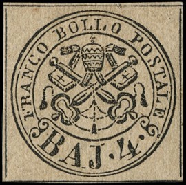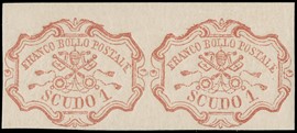 1852 - 1s rosa carminio annullato due volte con il bollo circolare di 'ROMA 11.2.1865'. CF A.Diena e Vaccari (Sassone [..]