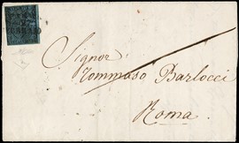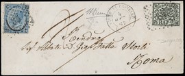 1852 - 2b grigio azzurrastro in affrancatura mista con Regno d'Italia, 20c su 15c celeste, ferro di cavallo I [..]