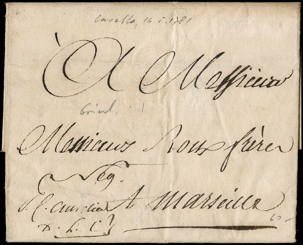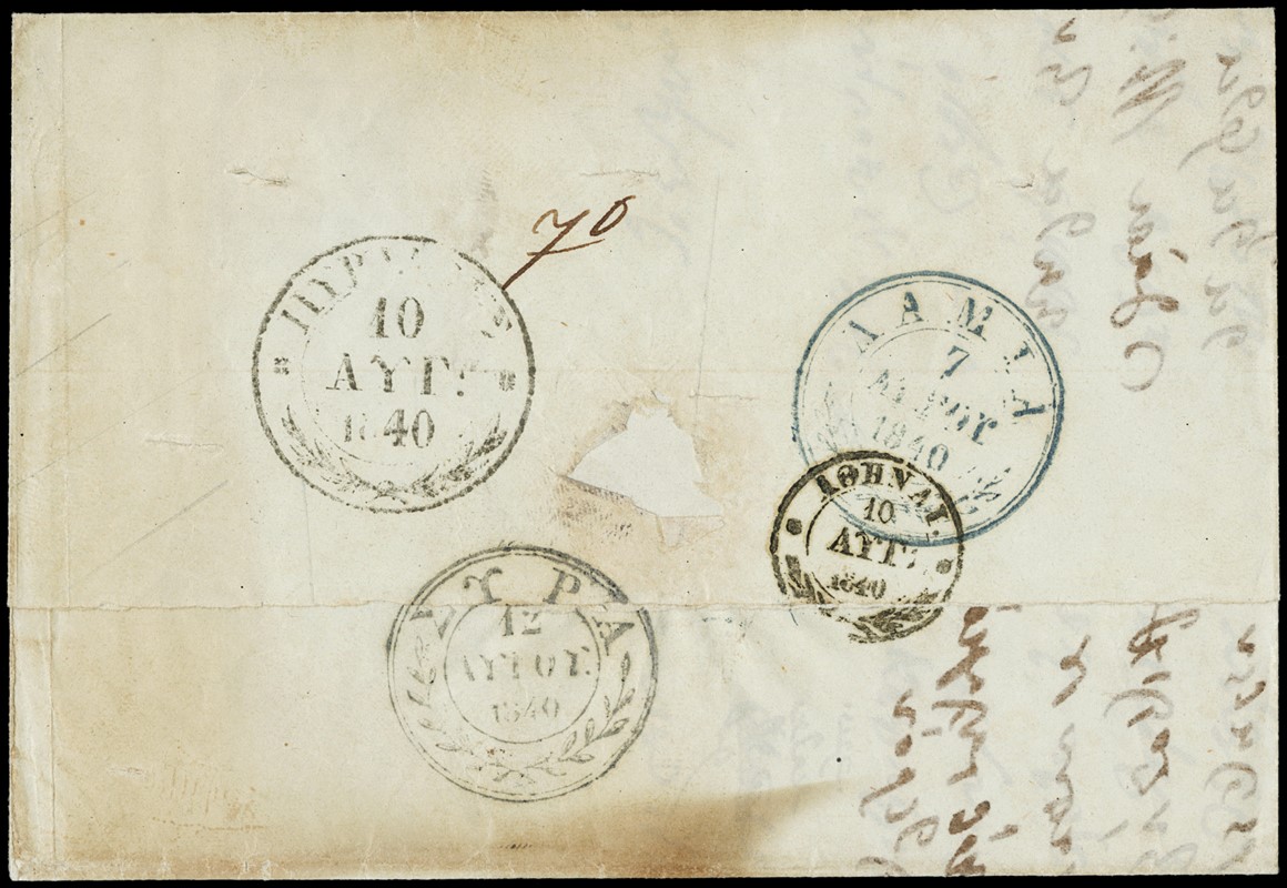 1777/81 - GRECIA E STATO IONICO: Interessante insieme di 37 lettere del periodo prefilatelico, tra cui alcune rare di Corfu' (1777) e Cavalla (1781), due lettere al ministro Colettis e alcune disinfettate. Non comune