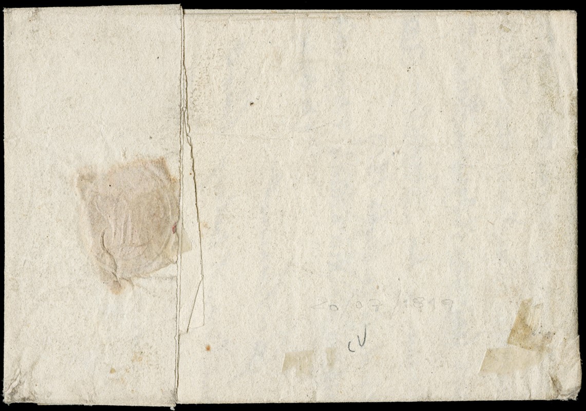 1819 - Provvisoria, 25c azzurro su foglio doppio c