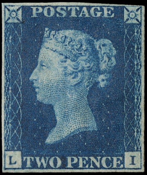 1840 - Gran Bretagna: 2d azzurro, pos.L-I, quattro