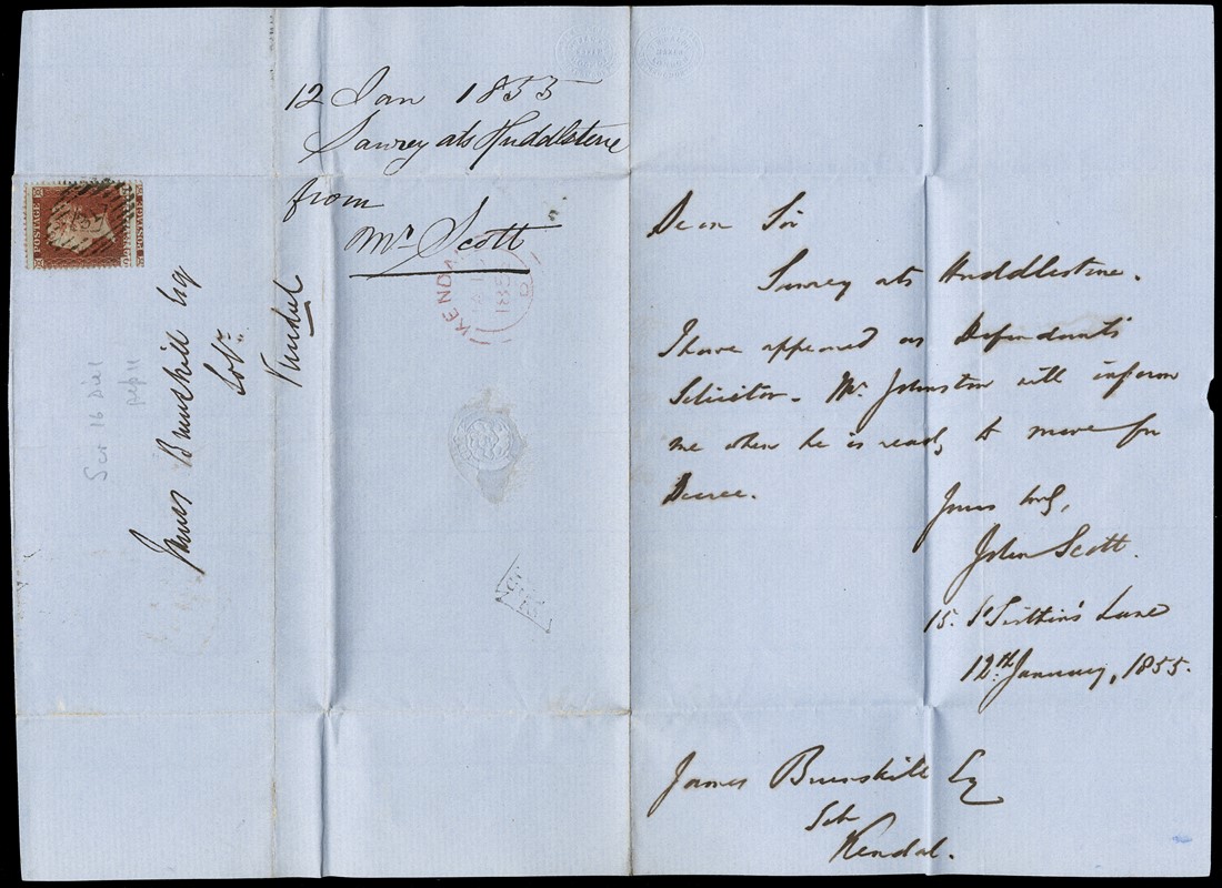 1841 - Gran Bretagna: 1d rosso bruno su carta azzurrata, un esemplare nuovo con gomma e uno annullato numerale '31' su lettera del 12 gennaio 1843 per Kendal. CF Bolaffi per l'1d nuovo (SG 17 - GBP 435)