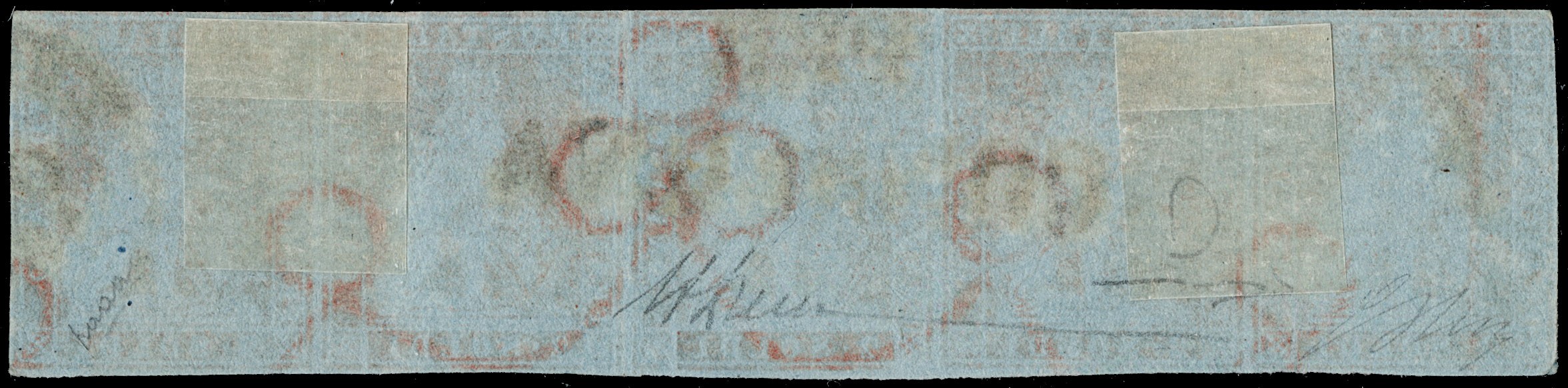 1851 - 2s scarlatto su carta azzurra, ST5 orizzont