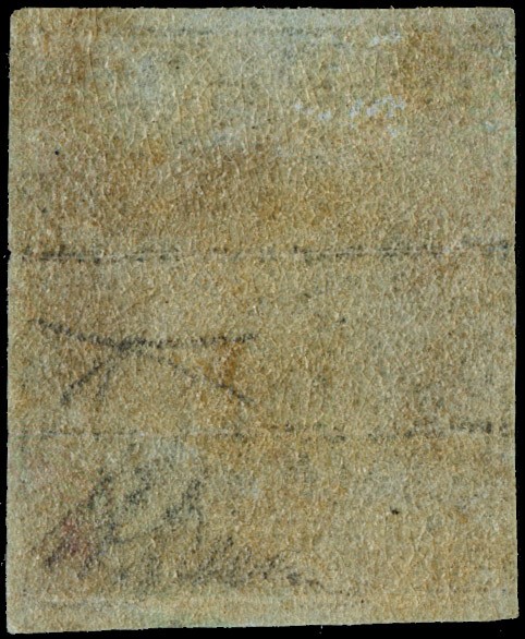 1851 - 9cr viola bruno scurissimo su carta azzurra