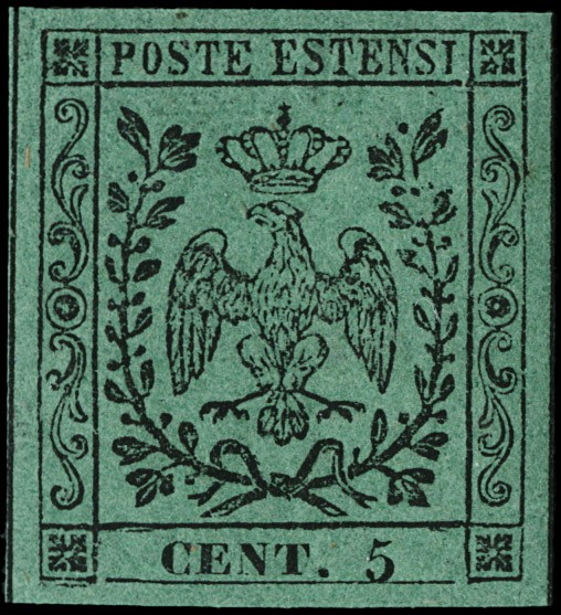 1852 - serie senza punto dopo la cifra: 5c verde,