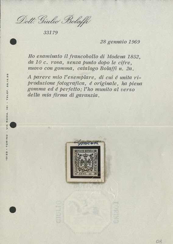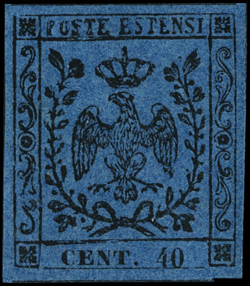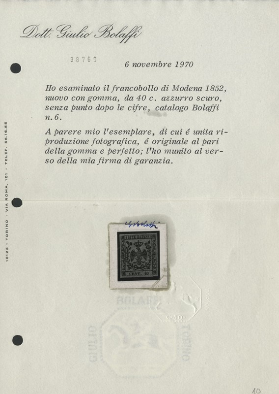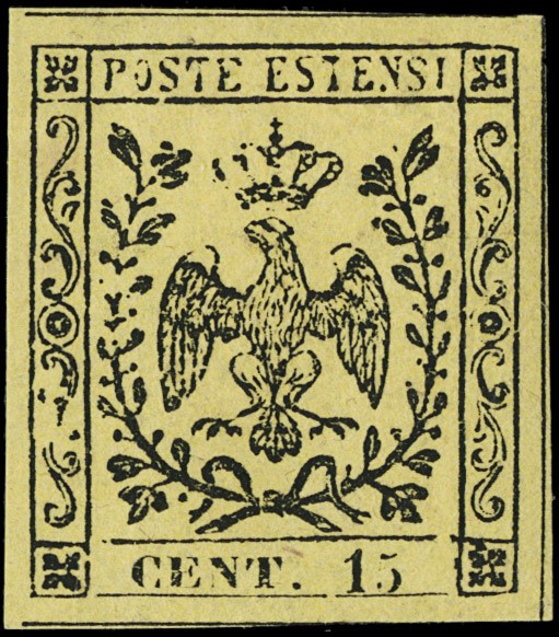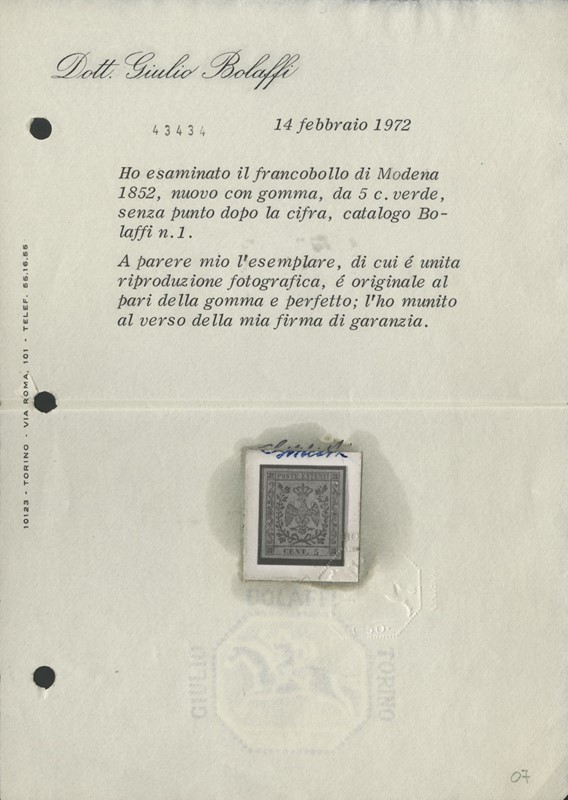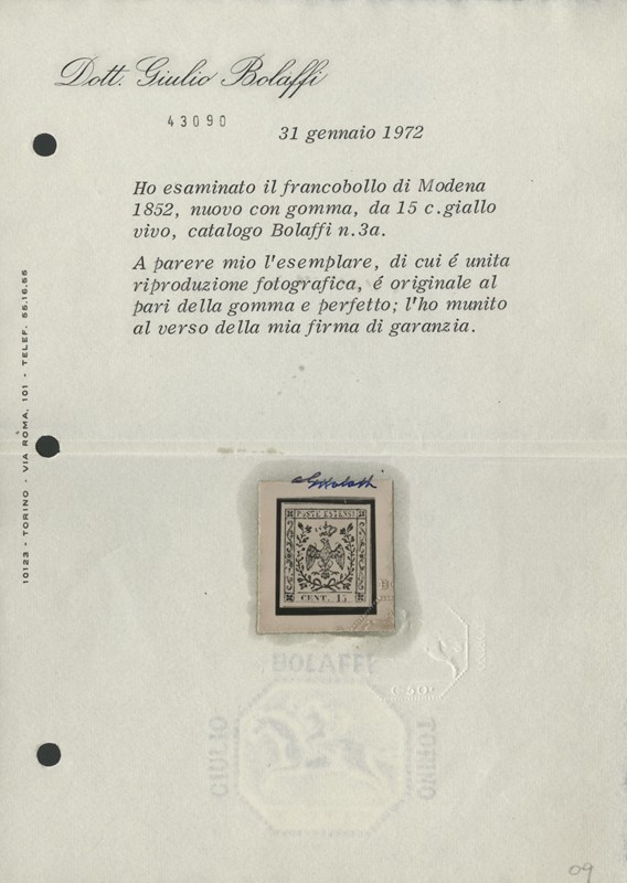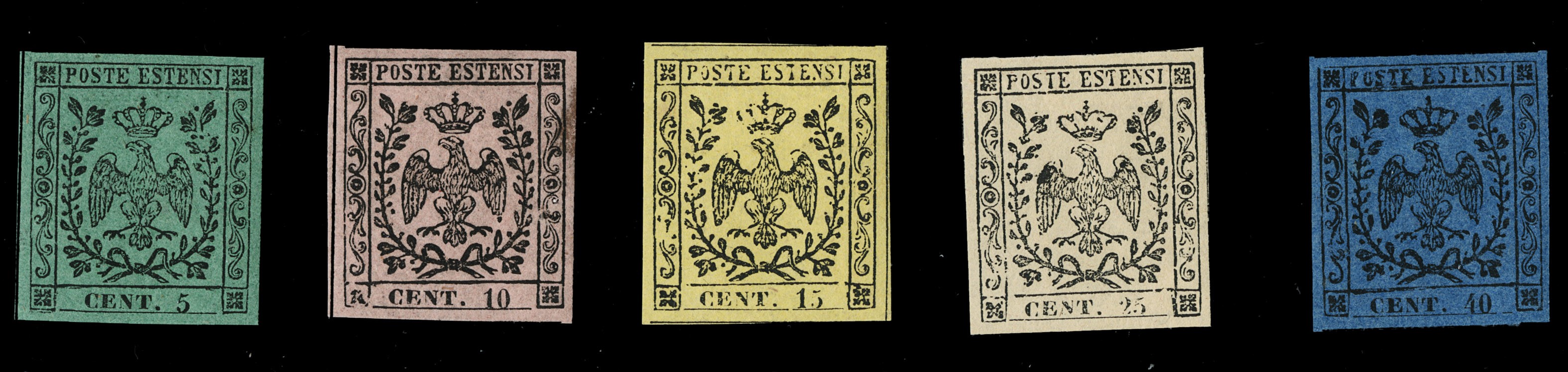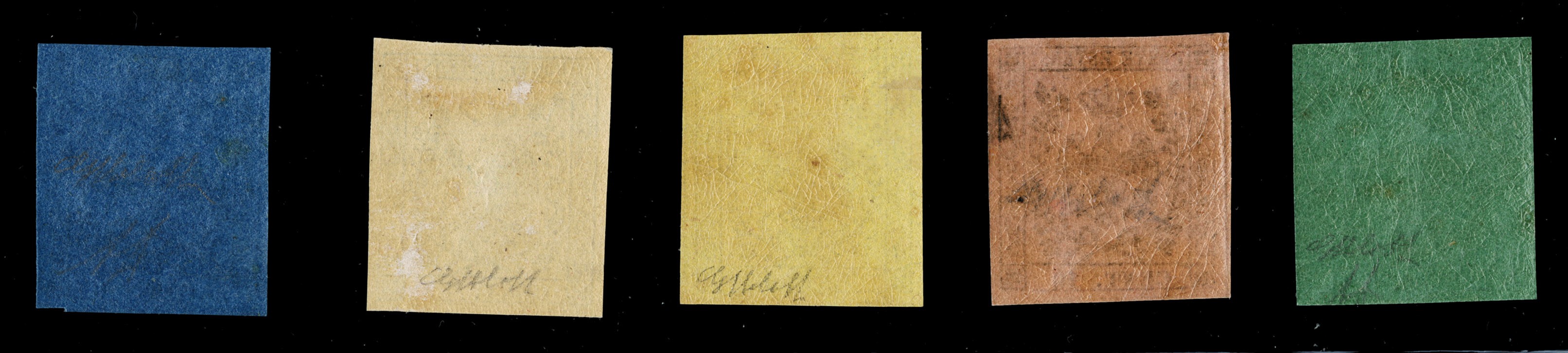 1852 - serie senza punto dopo la cifra: 5c verde, 10c rosa, 15c giallo e 40c azzurro scuro SL; 25c camoscio chiaro TL. 4 CF Bolaffi (Sassone 1/4,6 - Euro 19.470)