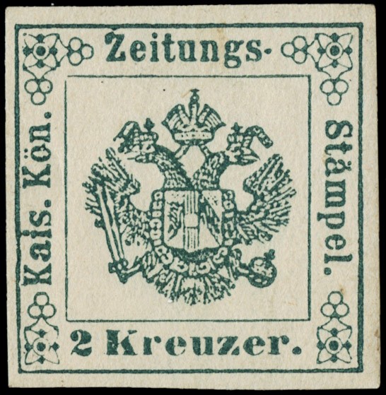 1853 - 2kr verde scuro. Raro e molto fresco. Sigle