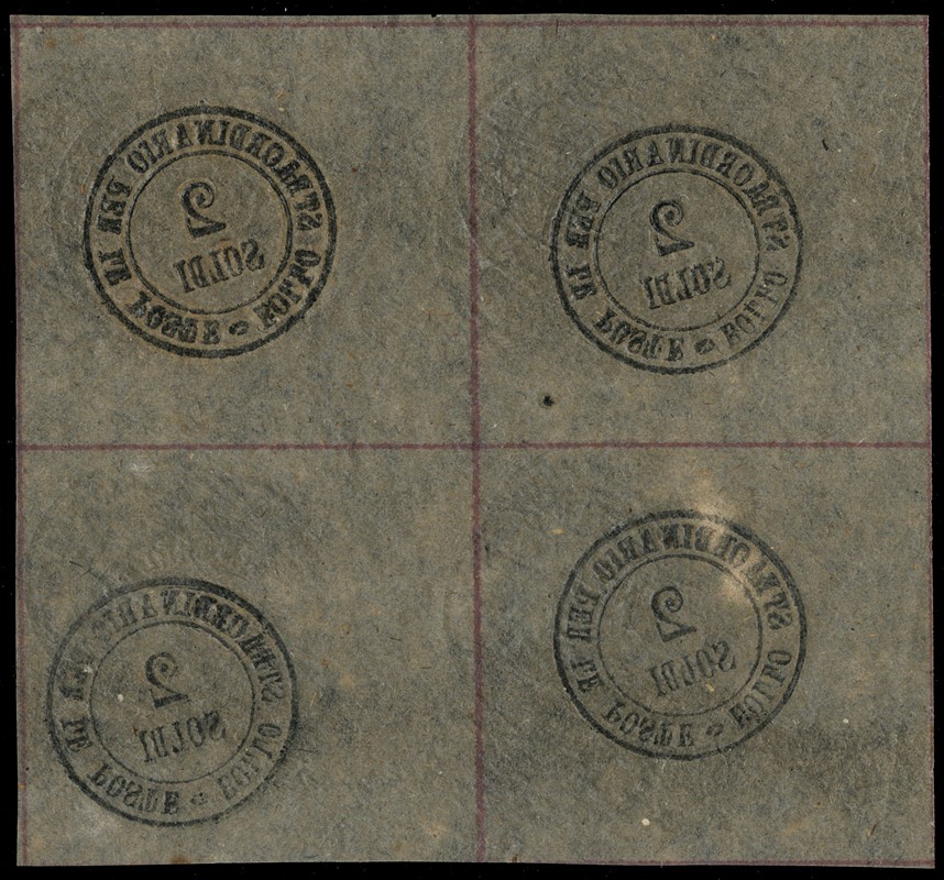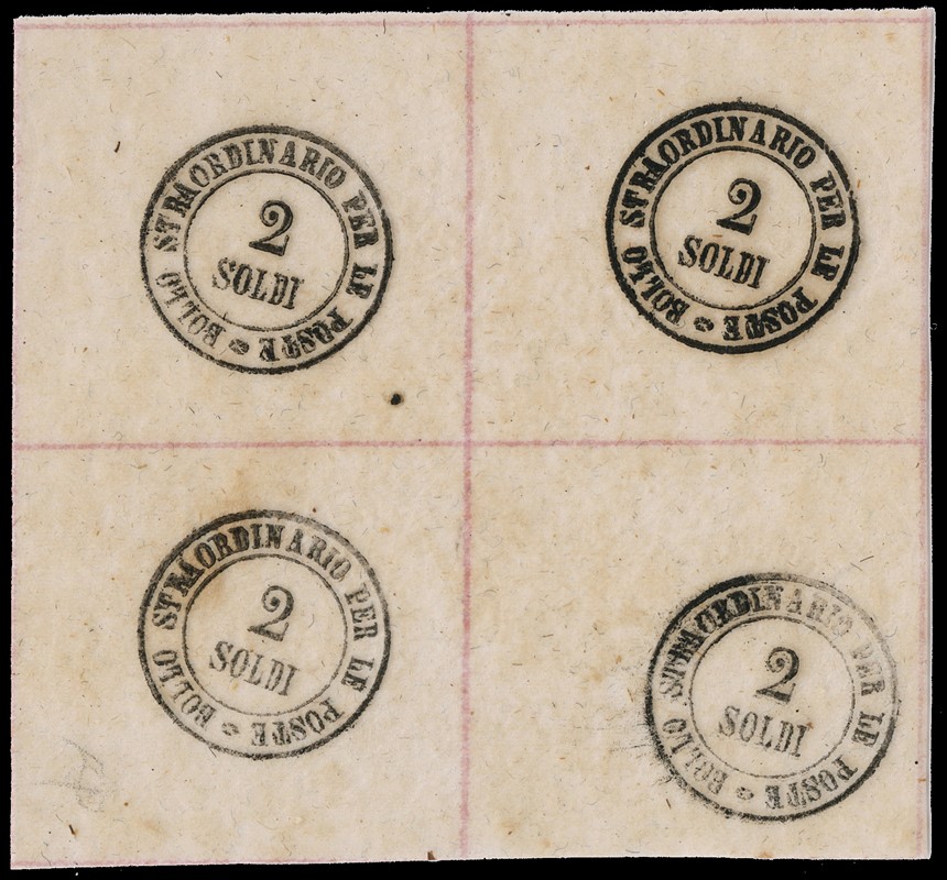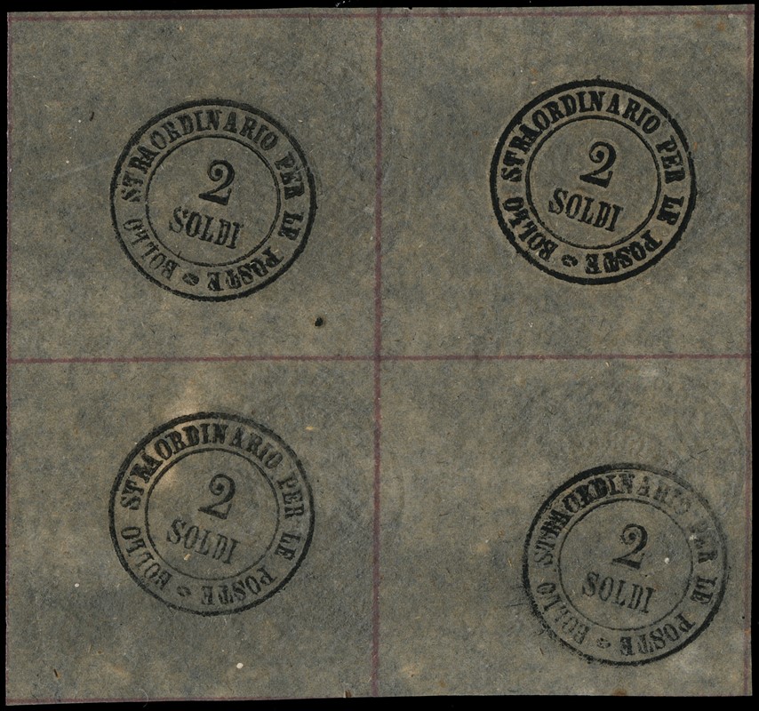 1854 - 2s nero, BL4 nuovo, piena gomma integra (Sassone 1 - Euro 1.400)