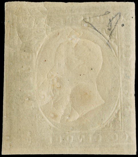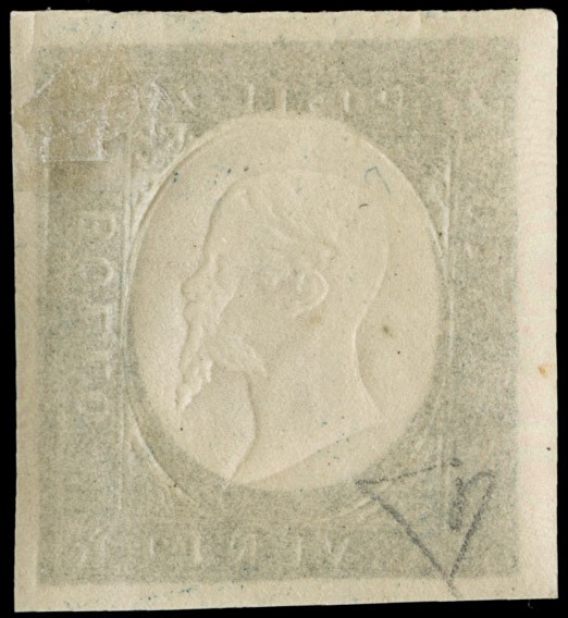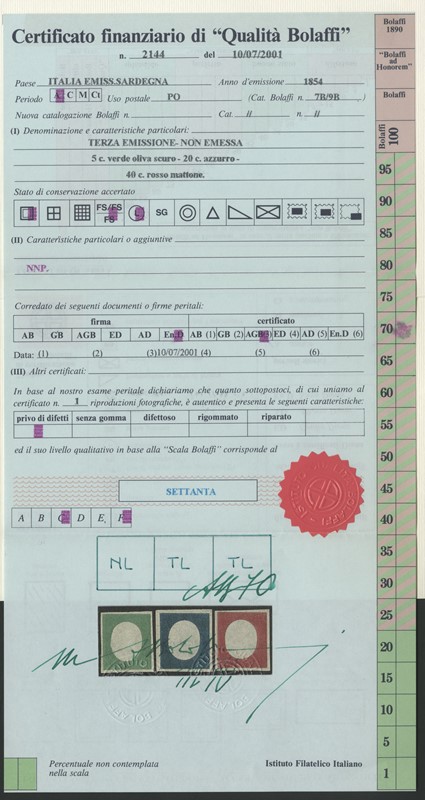 1854 - Non emessi, la serie completa di tre valori: 5c verde oliva scuro, SL con una minima spelatura al verso, 20c indaco e 40c rosso mattone, TL. CF Bolaffi 70% per la serie (Sassone 10/12 - Euro 12.550+)