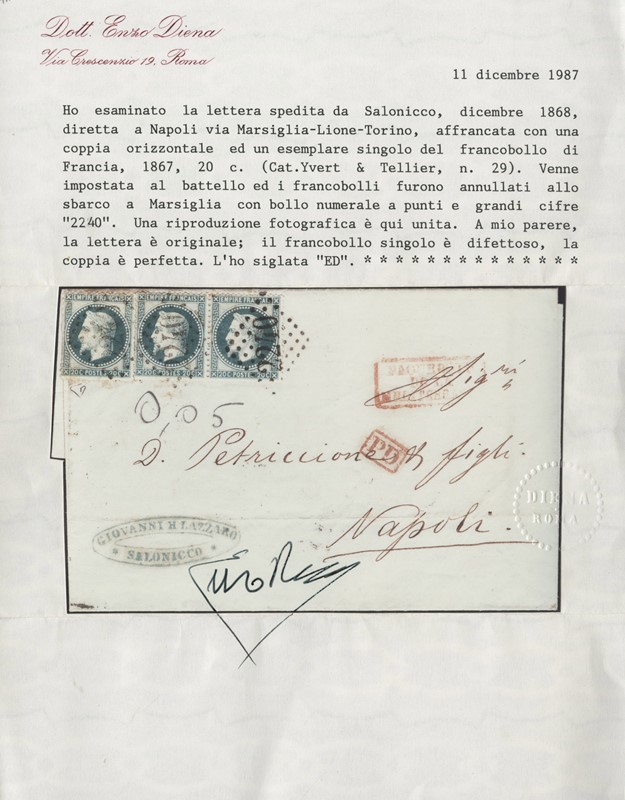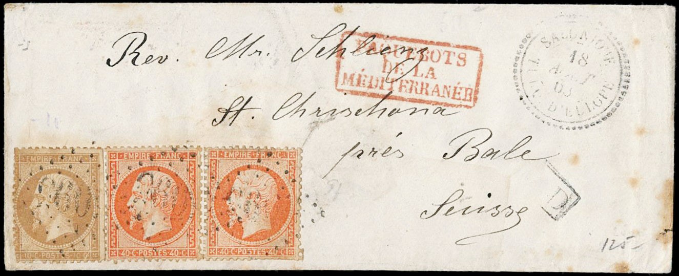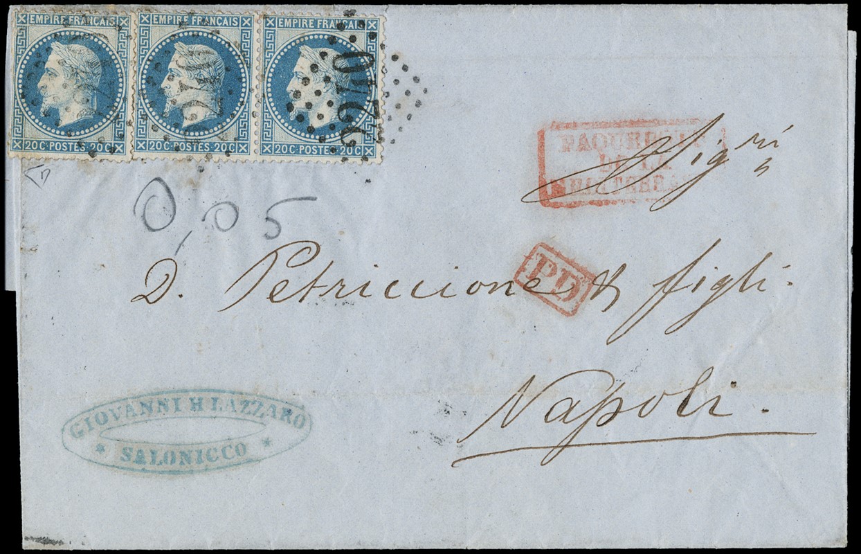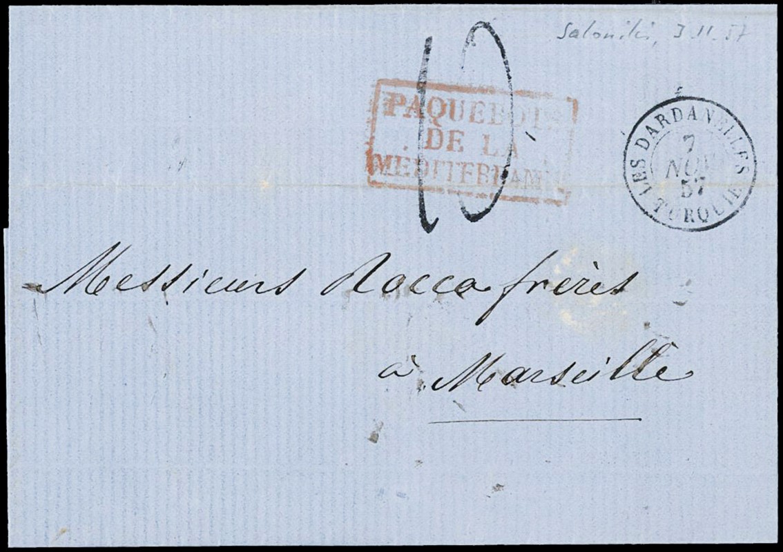 1855/1916 - LEVANTE FRANCESE: insieme di 15 diversi oggetti postali affrancati e non, con buona varieta'. 1 CF