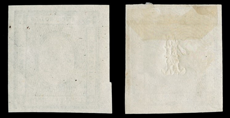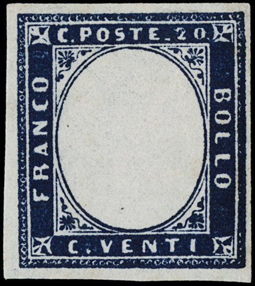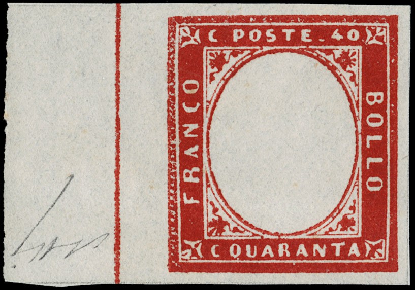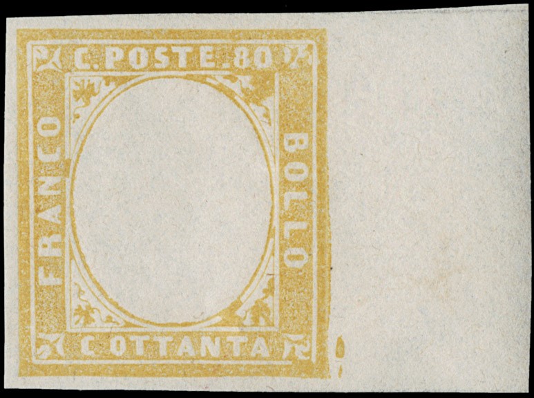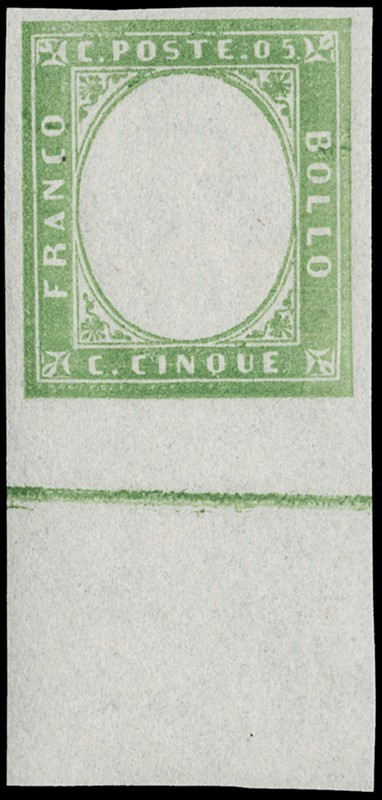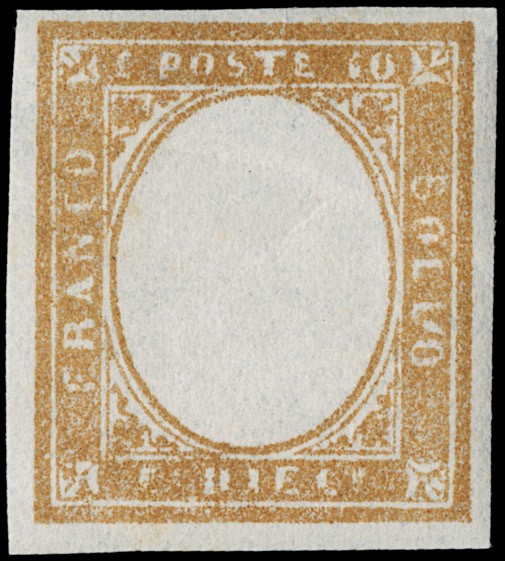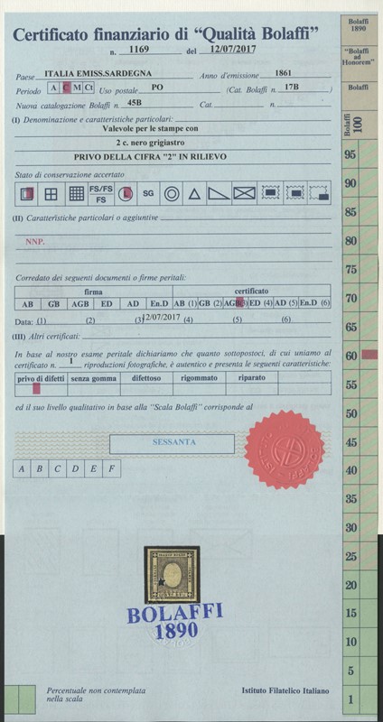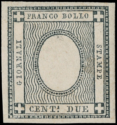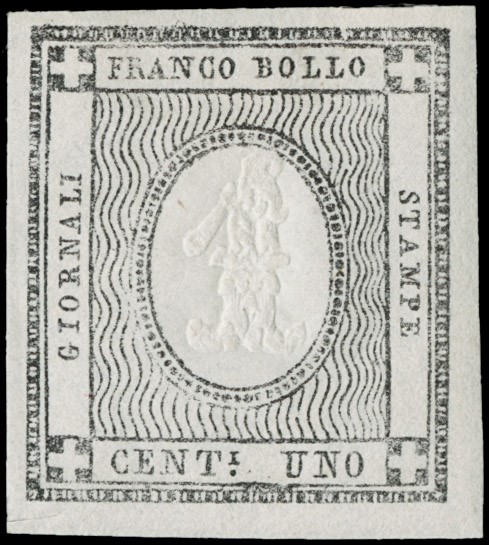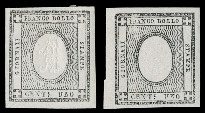 1855/61 - la IV emissione completa di cinque valori, escluso il 3 lire, senza effigie, con i francobolli per giornali da 1c e da 2c senza la cifra SL. Il 5c, 40c e 80c BdF integrali, il tutto montato su cartoncini Bolaffi. Tre CF finanziari Bolaffi (Bolaffi 10A/14A+16B+17B - Euro - )