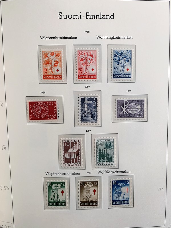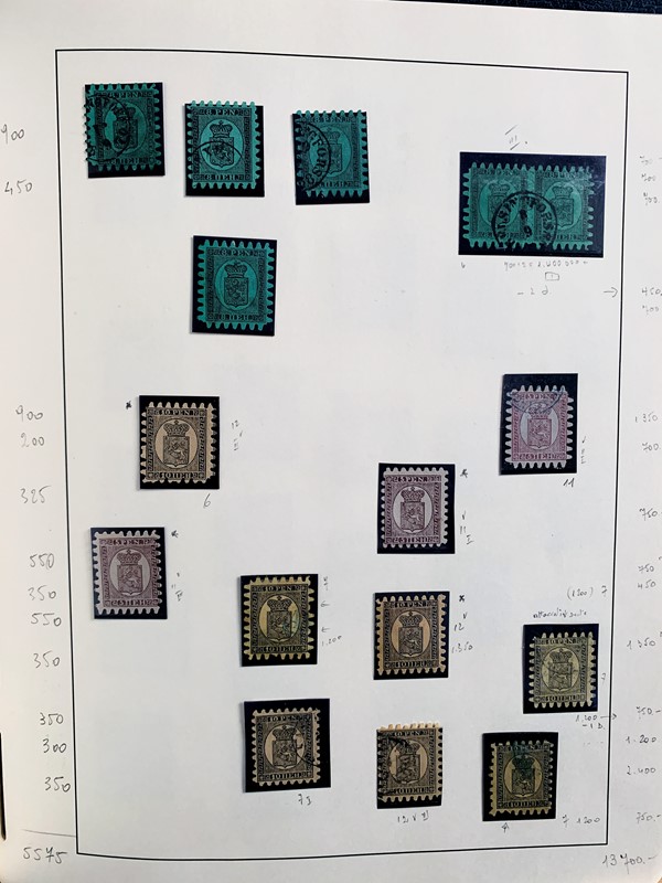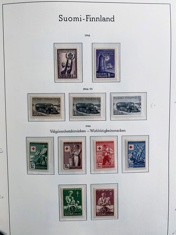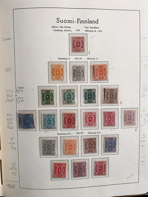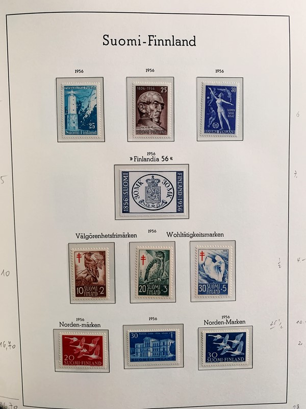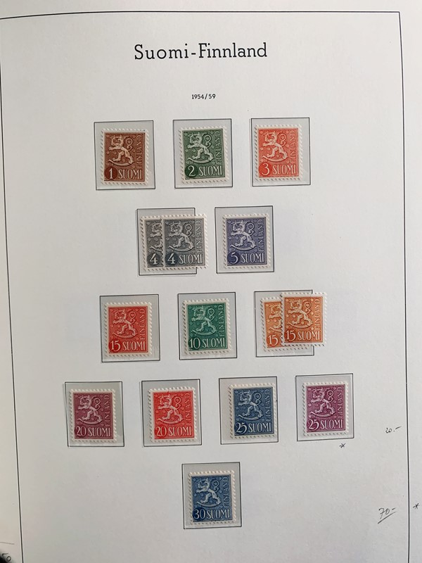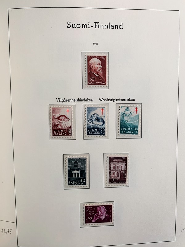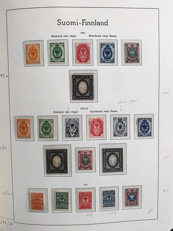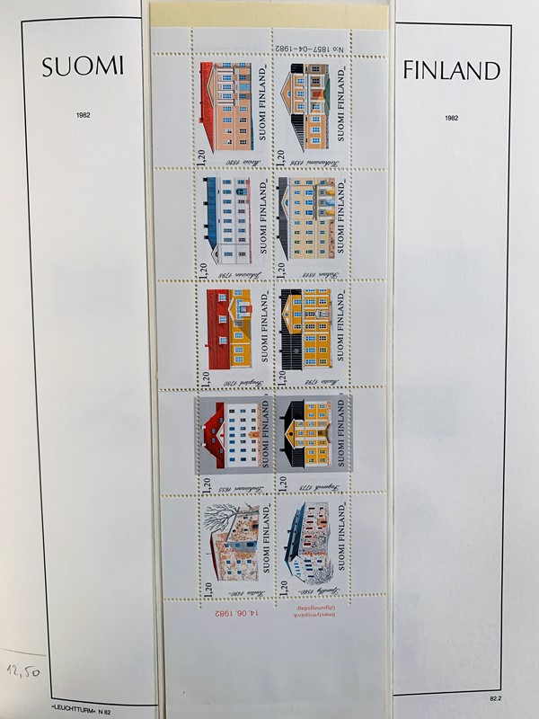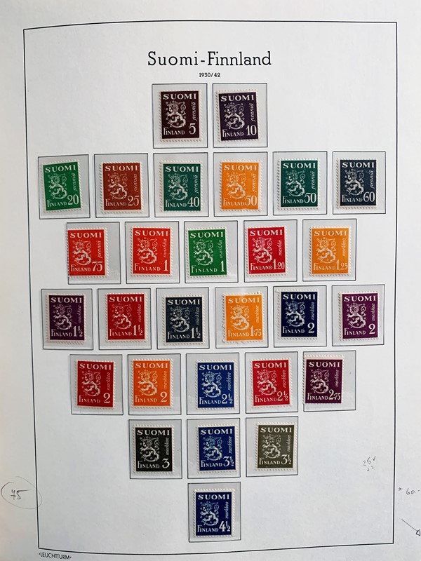 1856/1983 - FINLANDIA: avanzatissima collezione di francobolli nuovi (SL e TL) e usati del periodo, anche ripetuti. Molto ben rappresentata nei primi numeri con diverse rare presenze. Qualita' generalmente ottima, montata su album con taschine Leuchtturm. 11 CF (Yvert - oltre Euro 57.000)