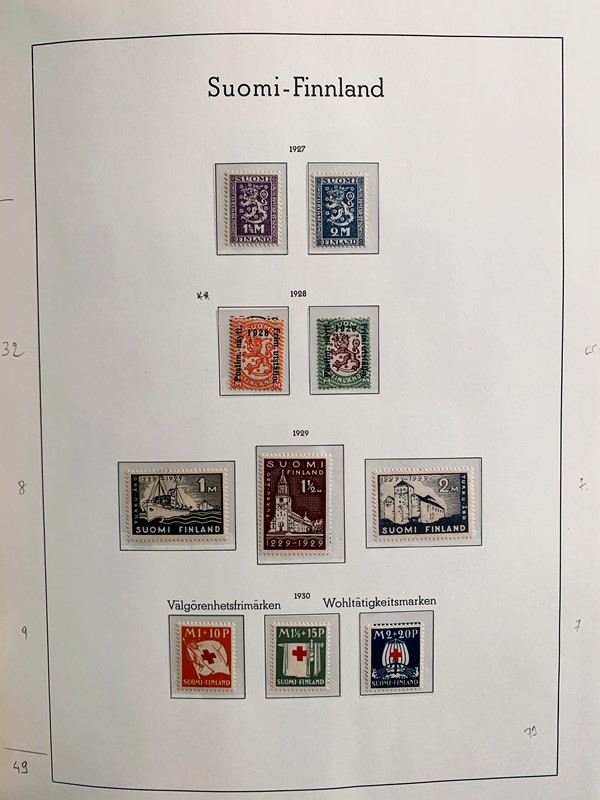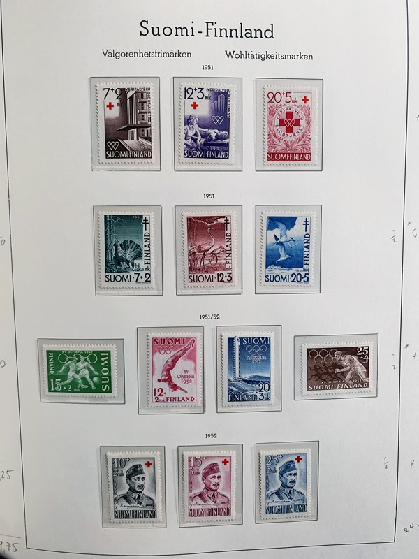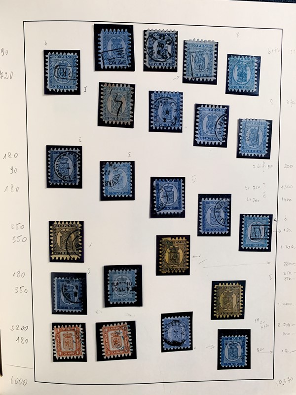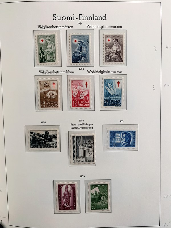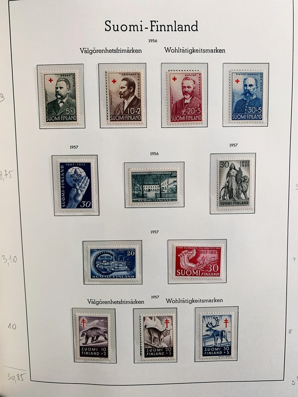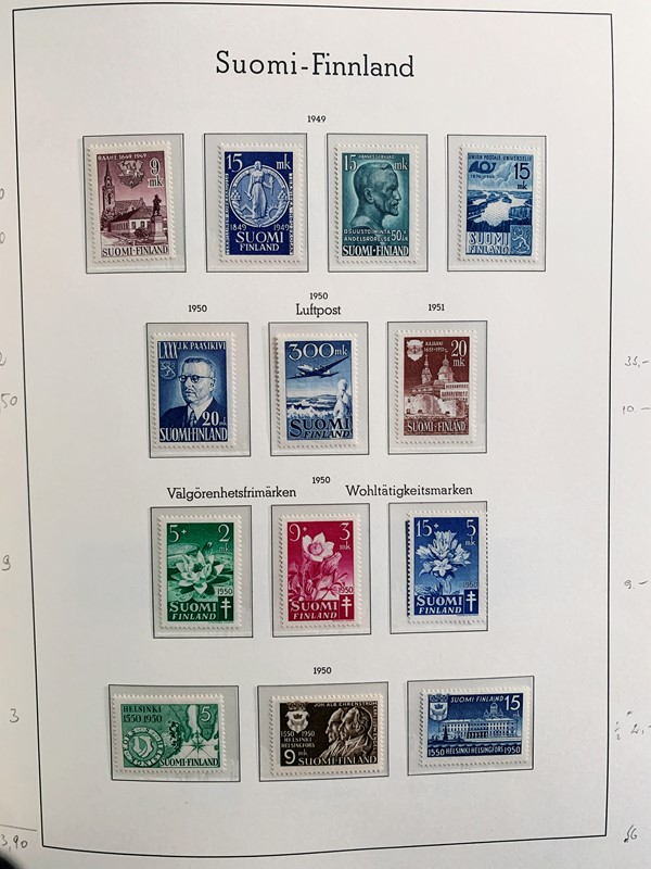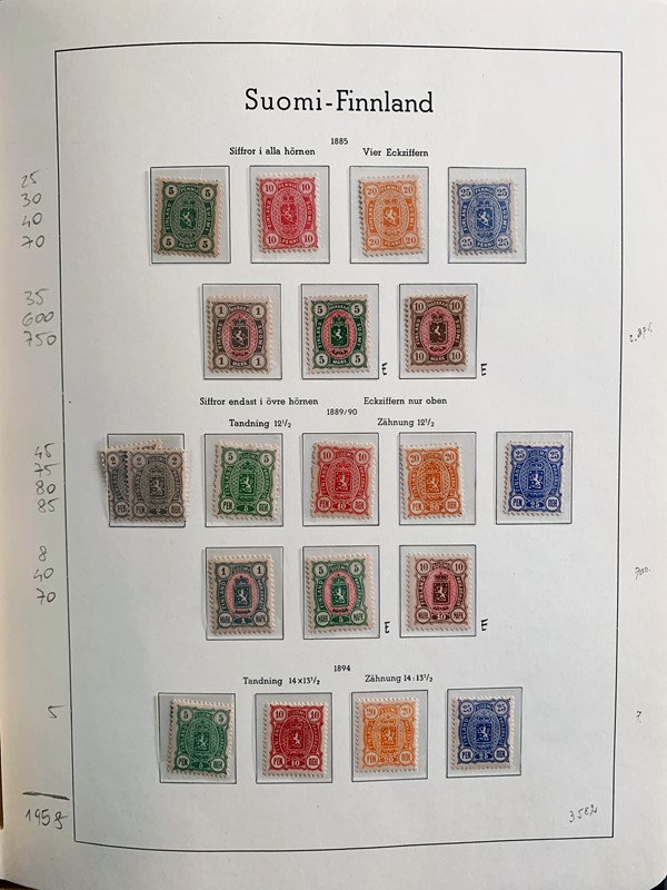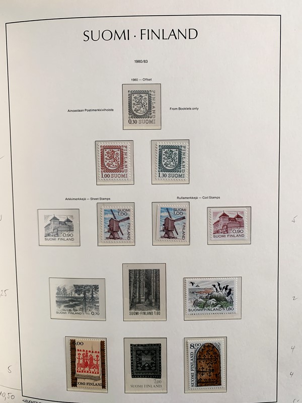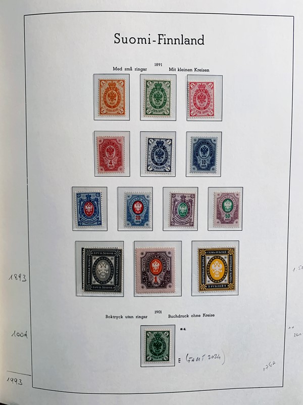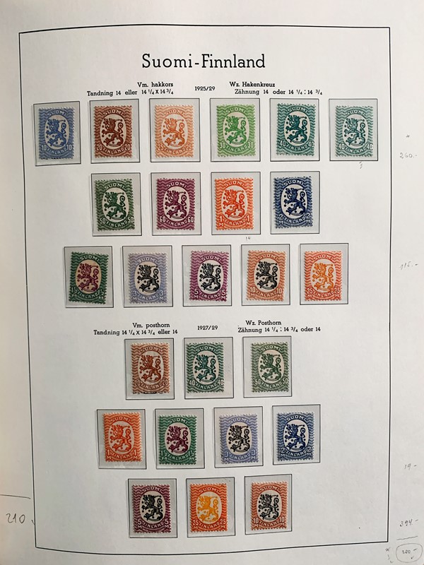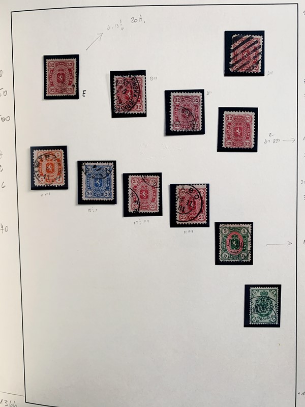1856/1983 - FINLANDIA: avanzatissima collezione di francobolli nuovi (SL e TL) e usati del periodo, anche ripetuti. Molto ben rappresentata nei primi numeri con diverse rare presenze. Qualita' generalmente ottima, montata su album con taschine Leuchtturm. 11 CF (Yvert - oltre Euro 57.000)