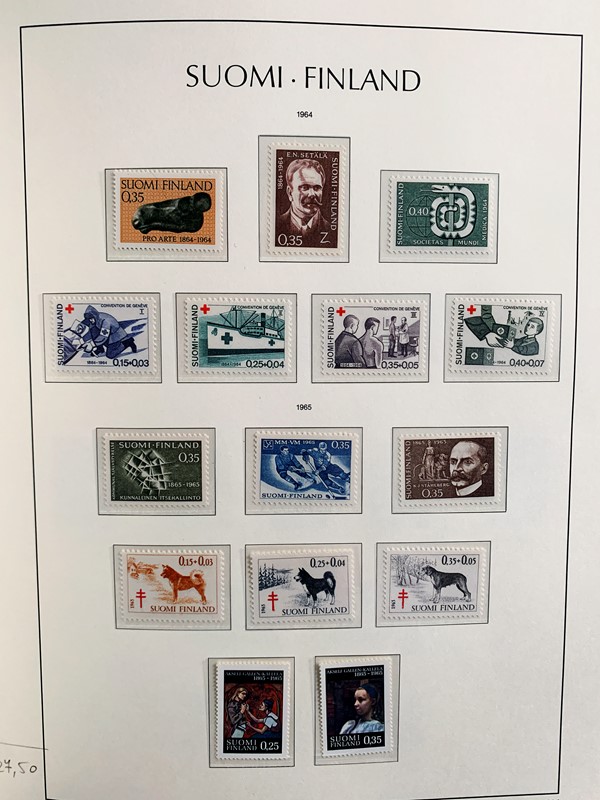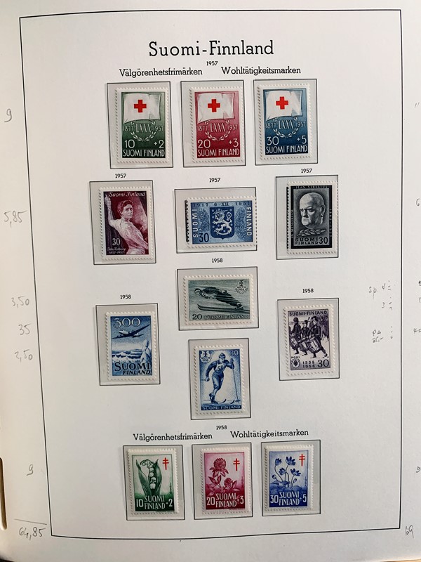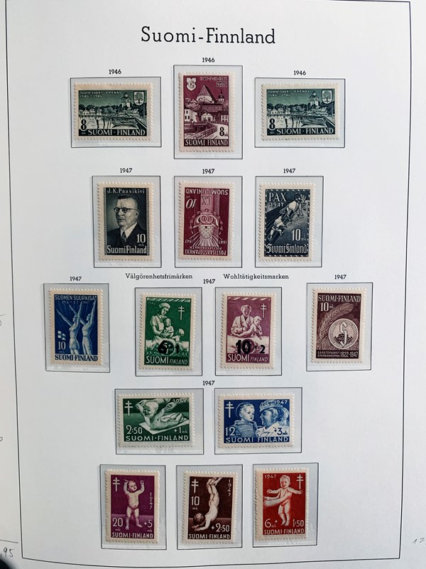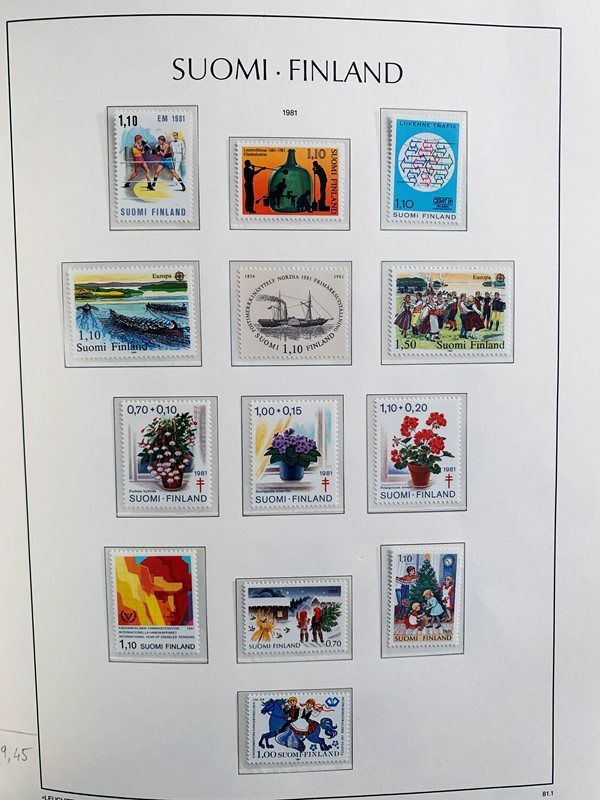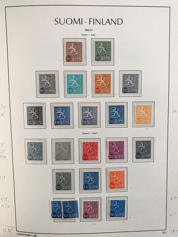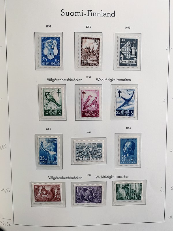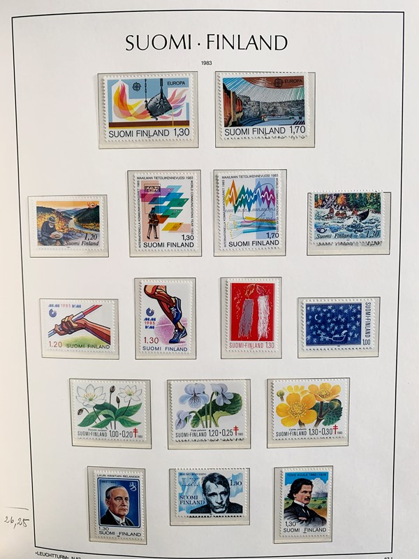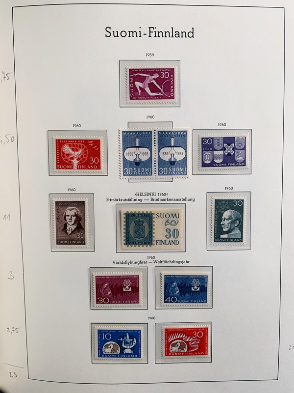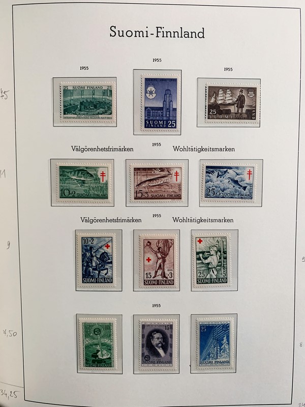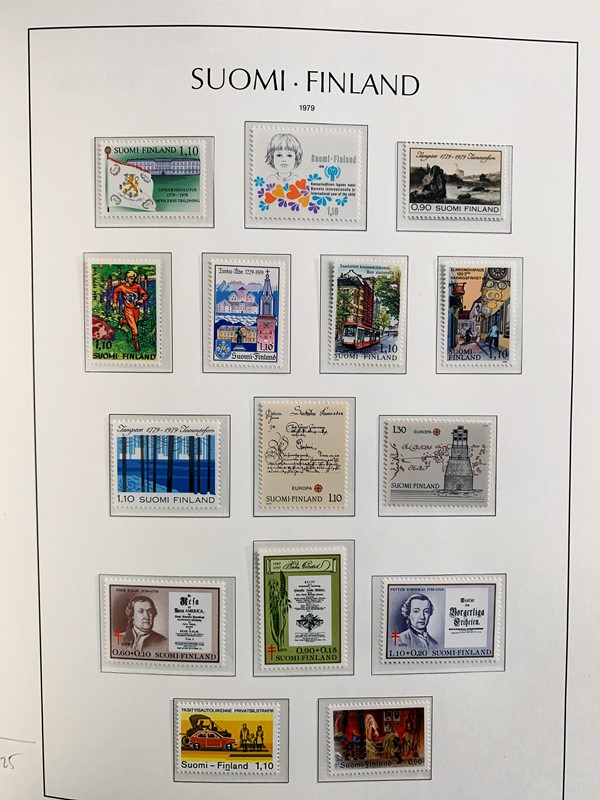 1856/1983 - FINLANDIA: avanzatissima collezione di francobolli nuovi (SL e TL) e usati del periodo, anche ripetuti. Molto ben rappresentata nei primi numeri con diverse rare presenze. Qualita' generalmente ottima, montata su album con taschine Leuchtturm. 11 CF (Yvert - oltre Euro 57.000)