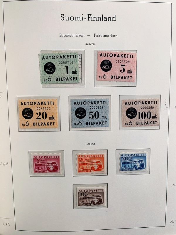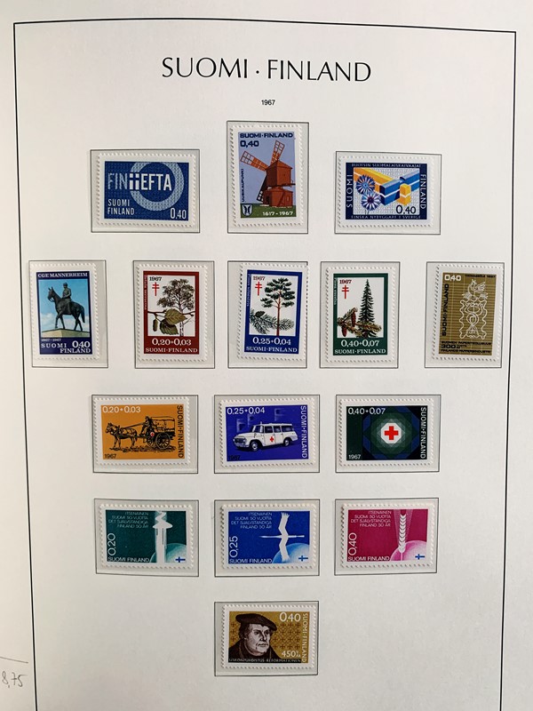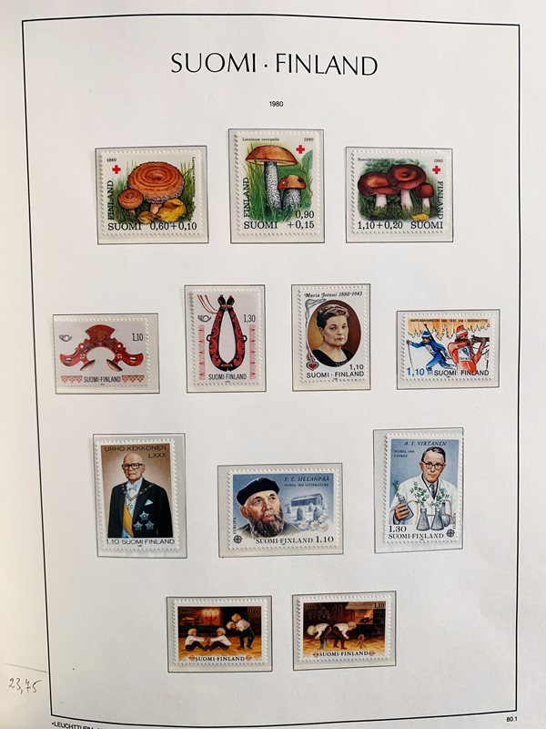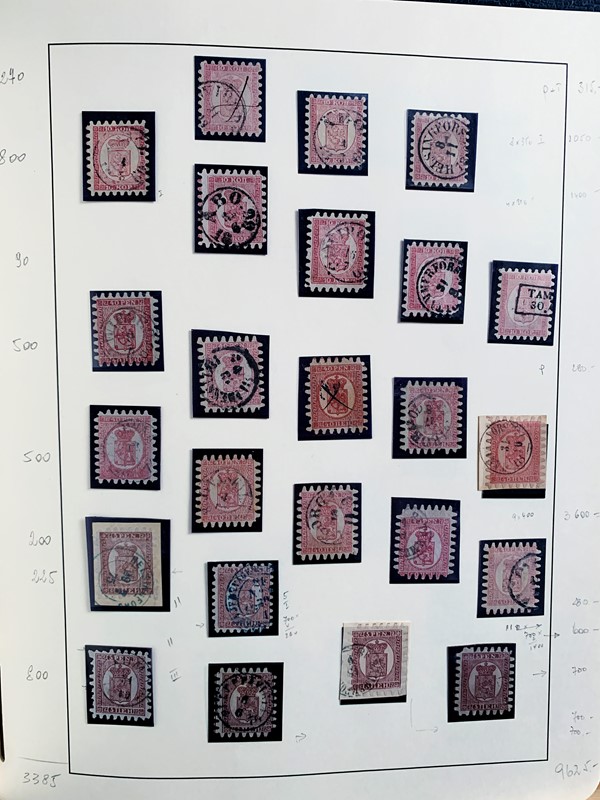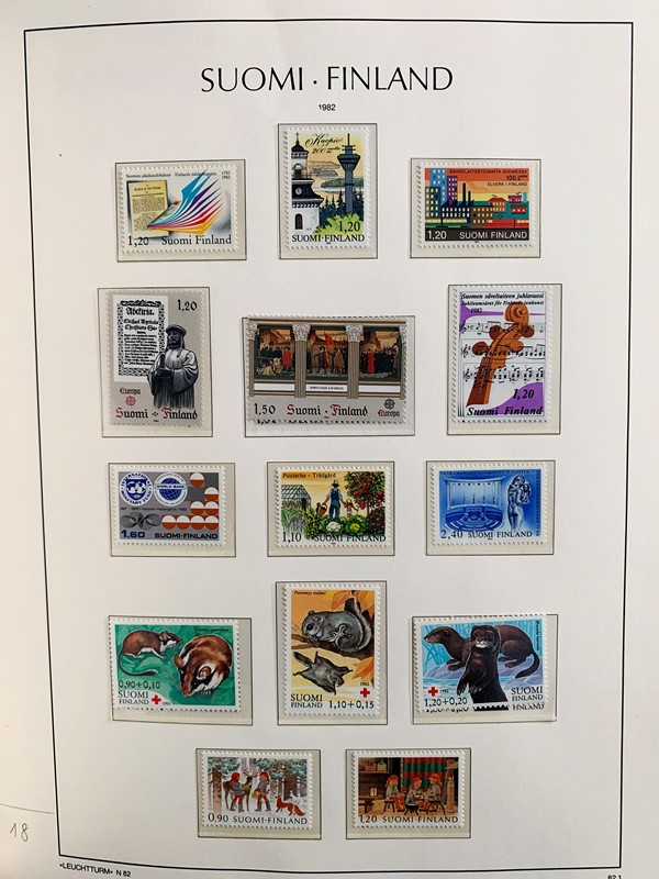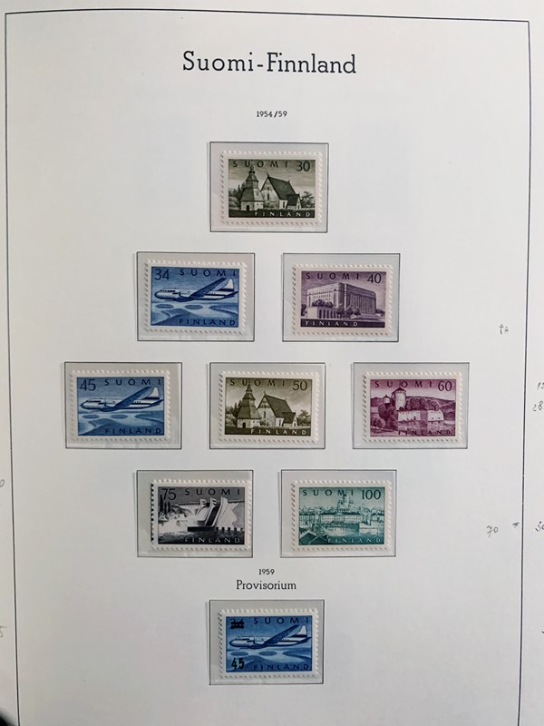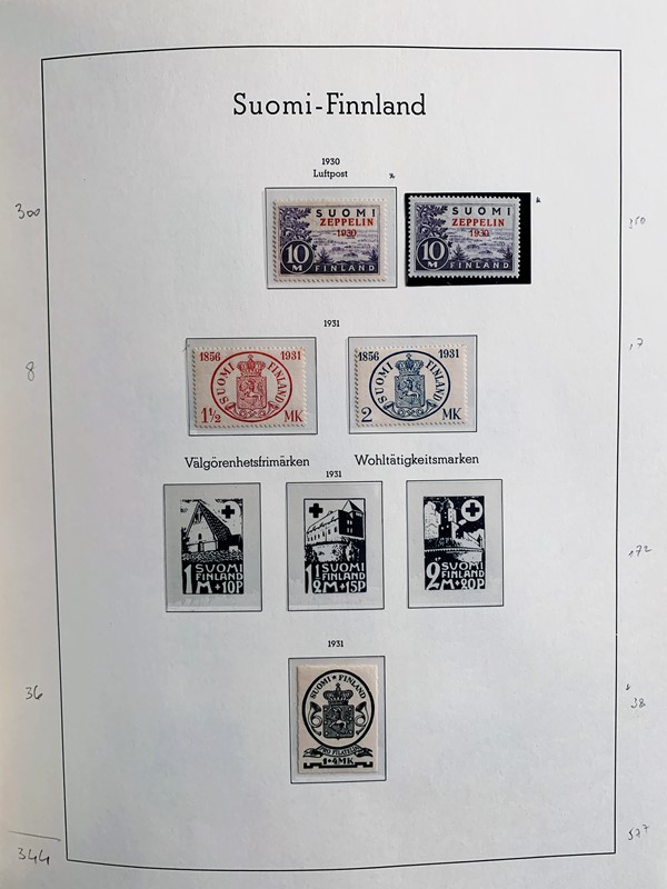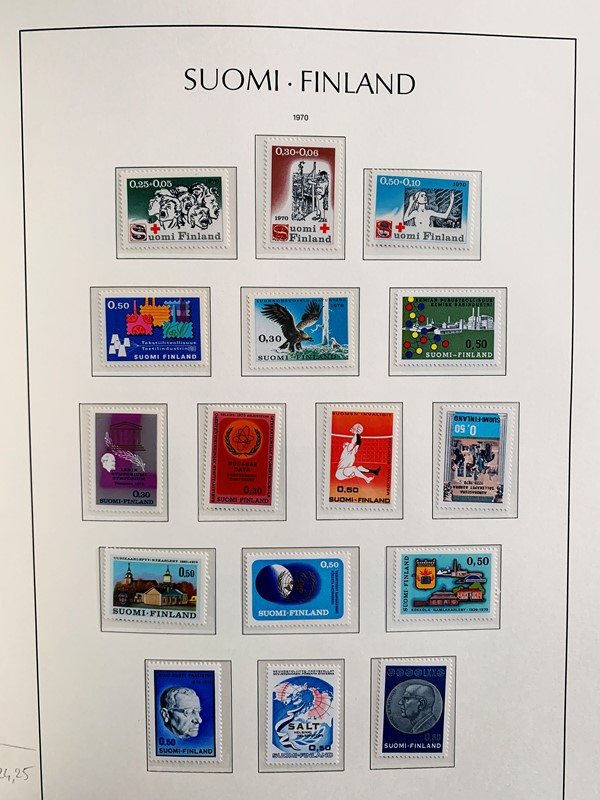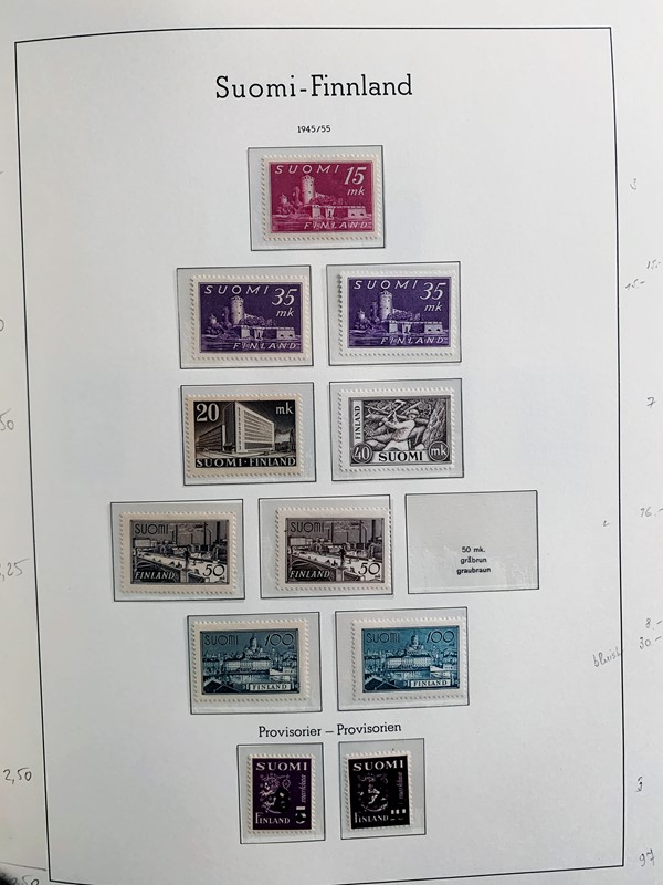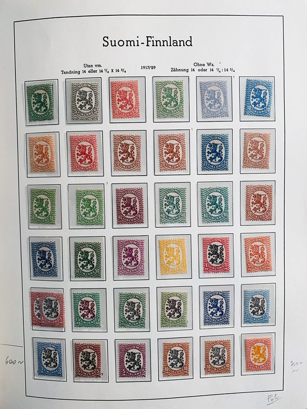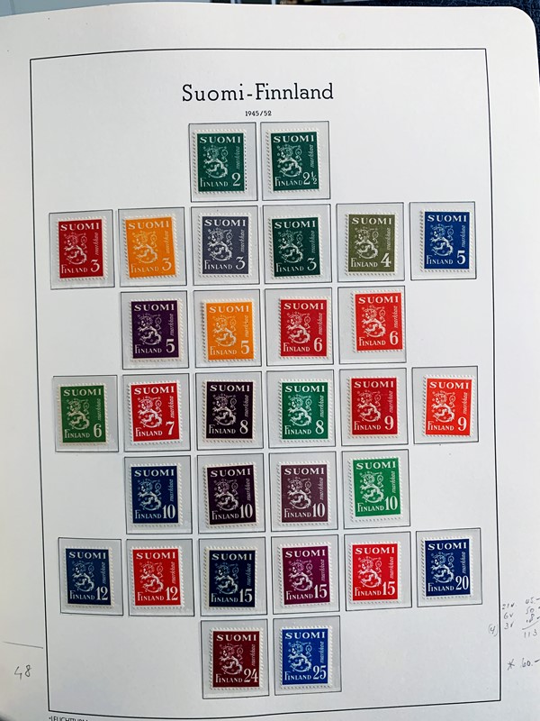 1856/1983 - FINLANDIA: avanzatissima collezione di francobolli nuovi (SL e TL) e usati del periodo, anche ripetuti. Molto ben rappresentata nei primi numeri con diverse rare presenze. Qualita' generalmente ottima, montata su album con taschine Leuchtturm. 11 CF (Yvert - oltre Euro 57.000)