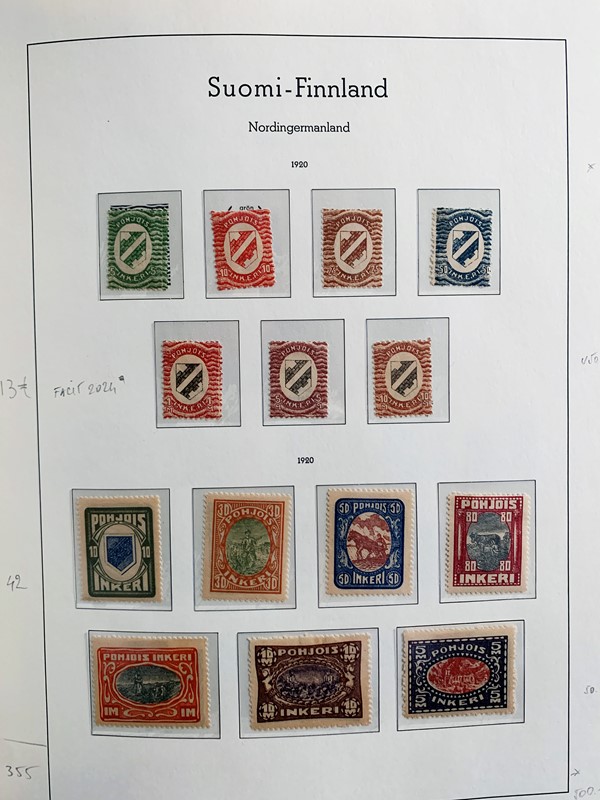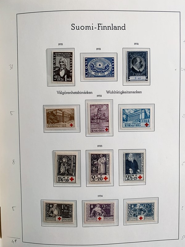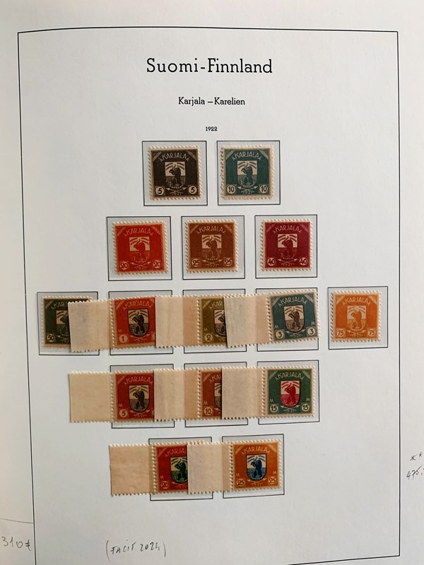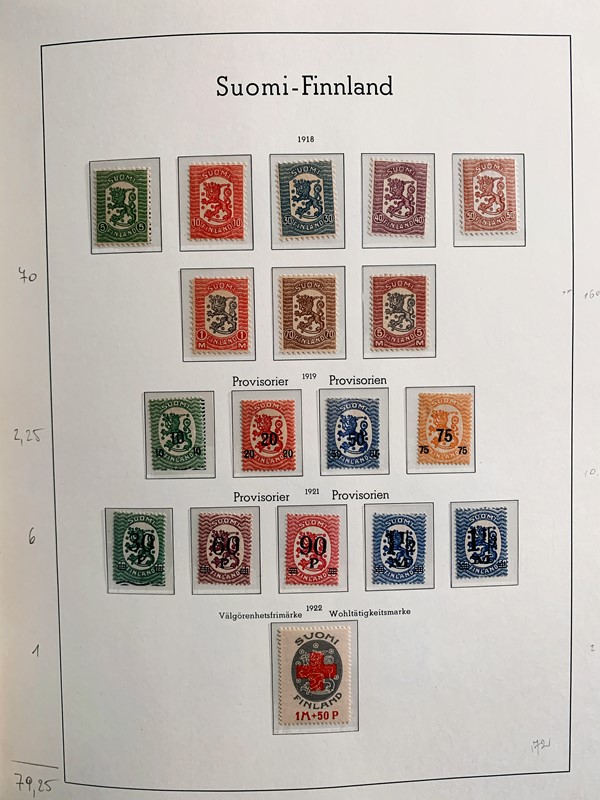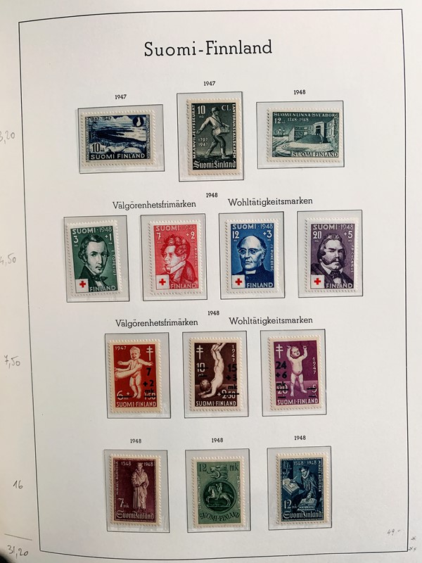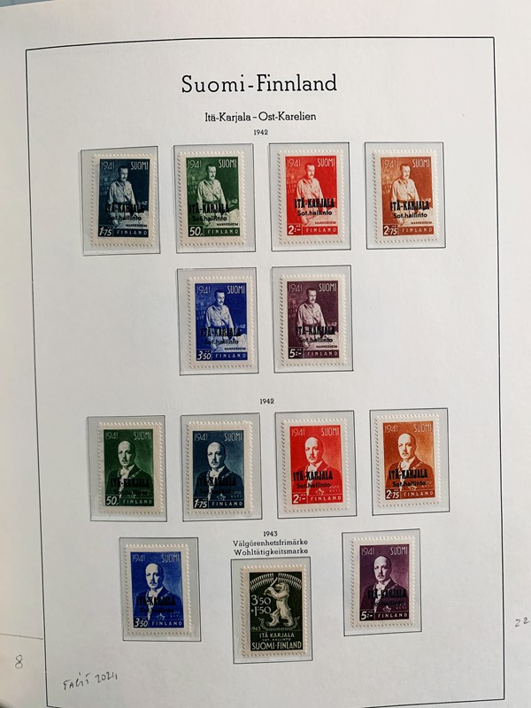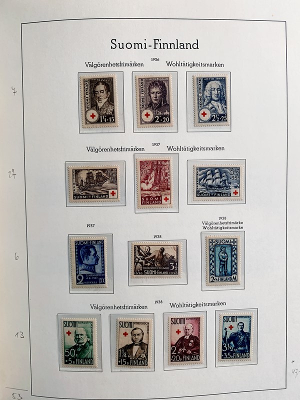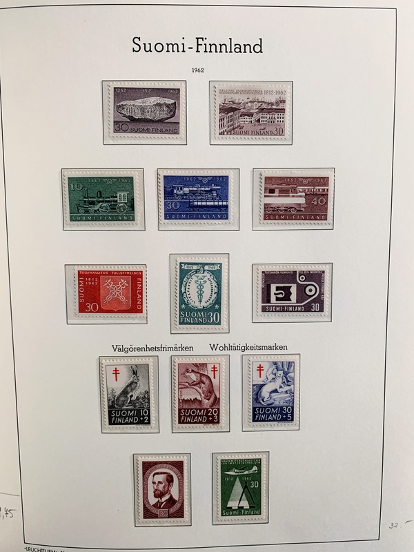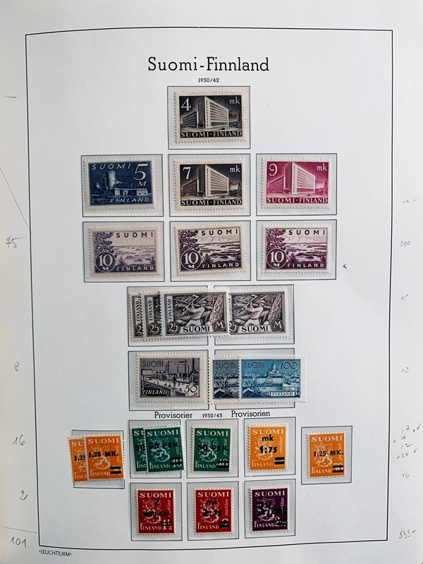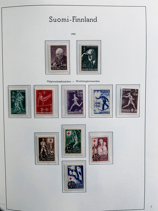 1856/1983 - FINLANDIA: avanzatissima collezione di francobolli nuovi (SL e TL) e usati del periodo, anche ripetuti. Molto ben rappresentata nei primi numeri con diverse rare presenze. Qualita' generalmente ottima, montata su album con taschine Leuchtturm. 11 CF (Yvert - oltre Euro 57.000)