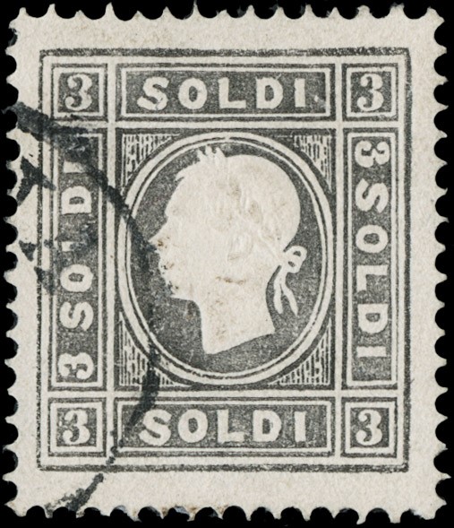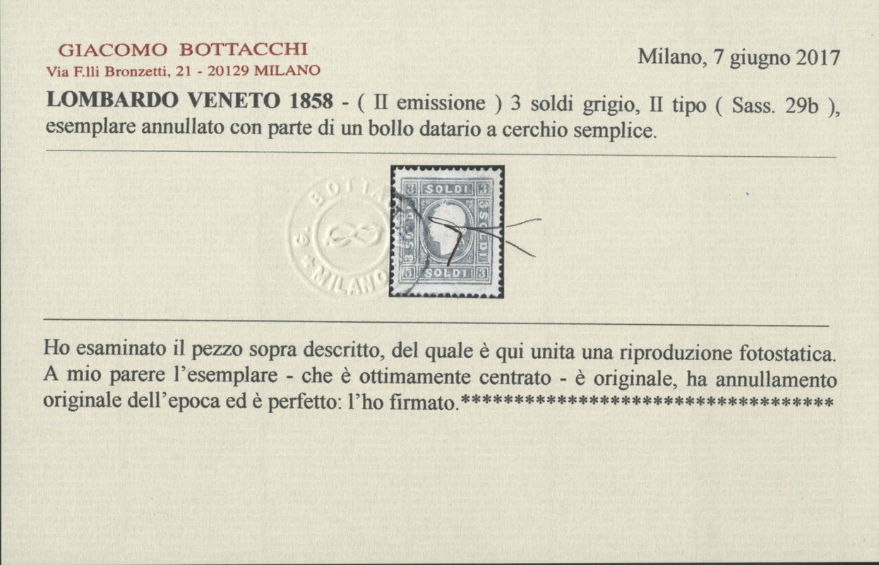 1859 - 3s grigio II tipo. Colore raro. Sigla Vaccari, CF Bottacchi (Sassone 29b - Euro 1.800)
