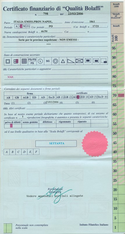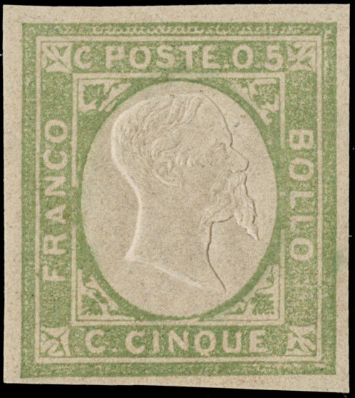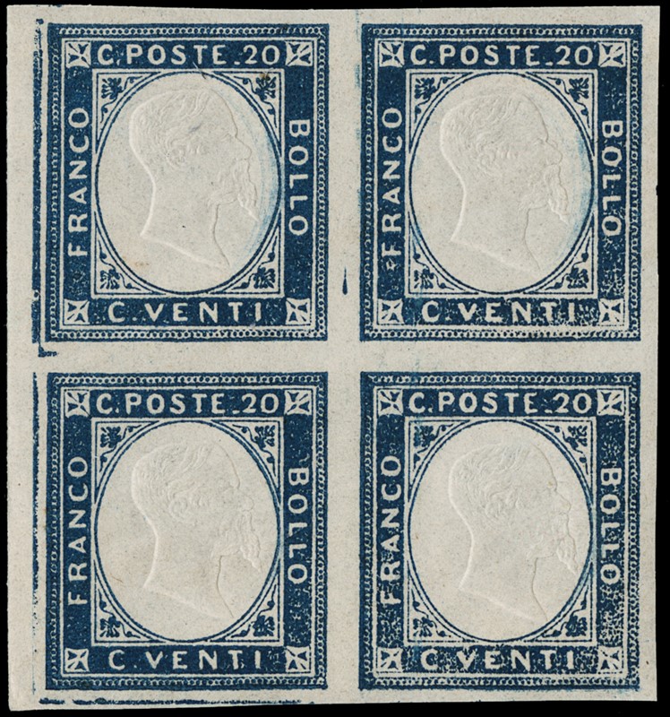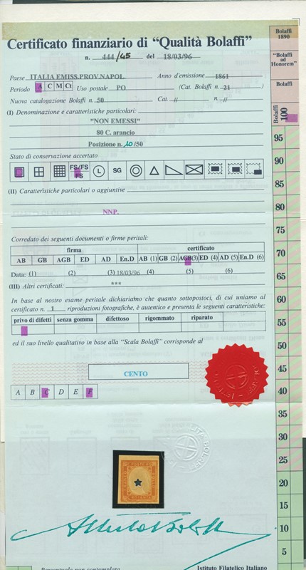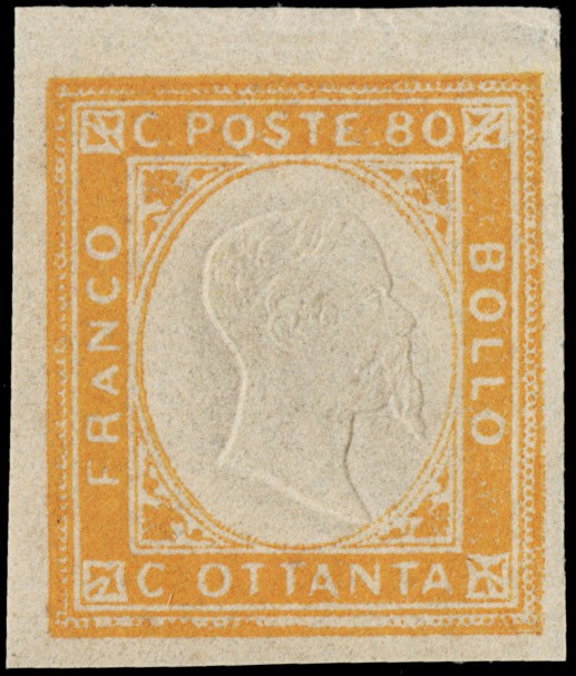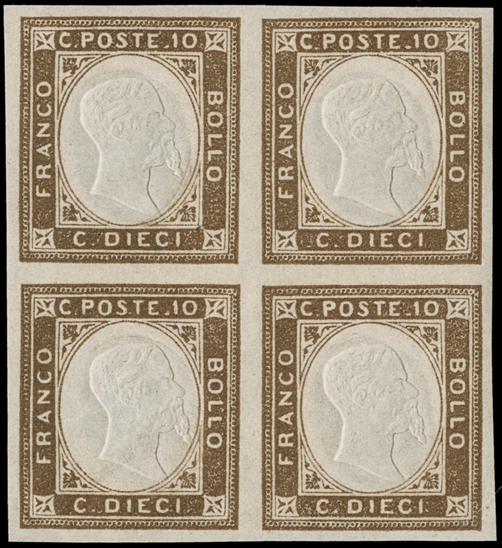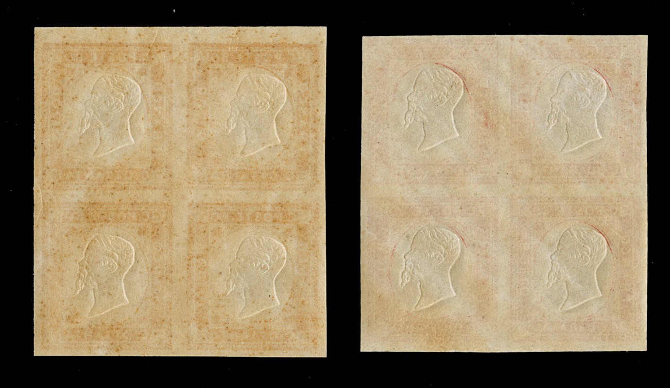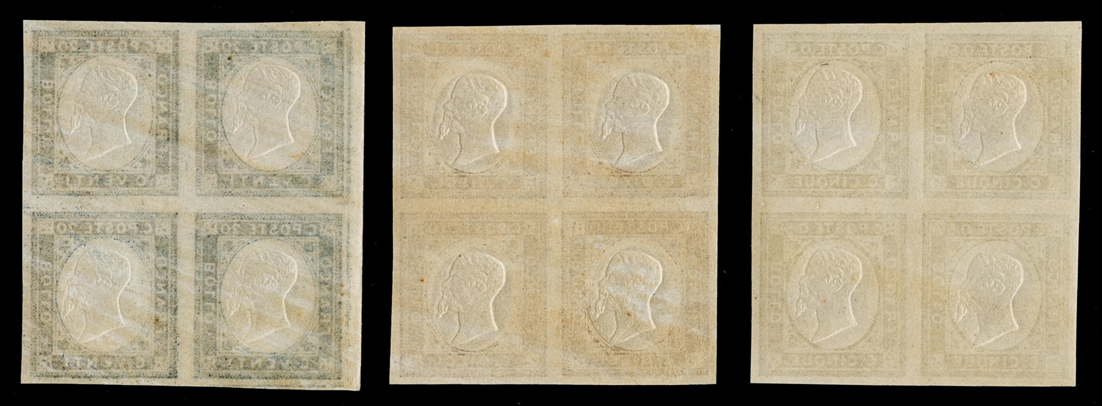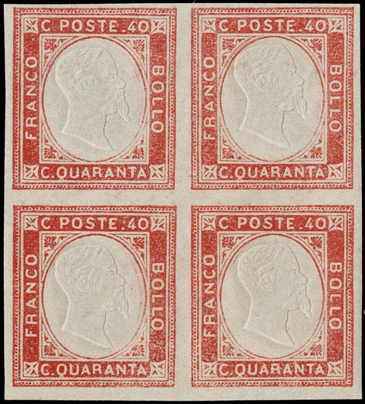 1861 - Non emessi, i cinque valori singoli e in BL4, tutti SL. CF Bolaffi 100% per l'80c arancio e 70% per i BL4 (Sassone 1/5 - Euro 4.300)