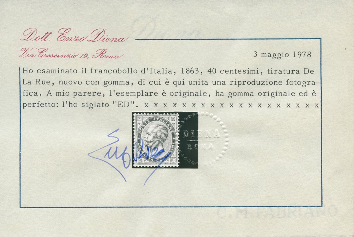 1863 - 40c rosa carminio, DLR Londra, ben centrato. CF E.Diena (Sassone L20 - Euro 20.000)