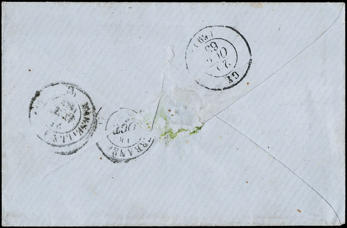 1863 - lettera non affrancata dalla 'BRIGADE FRANC