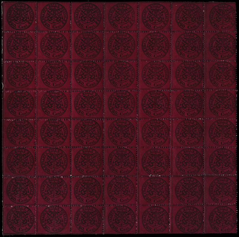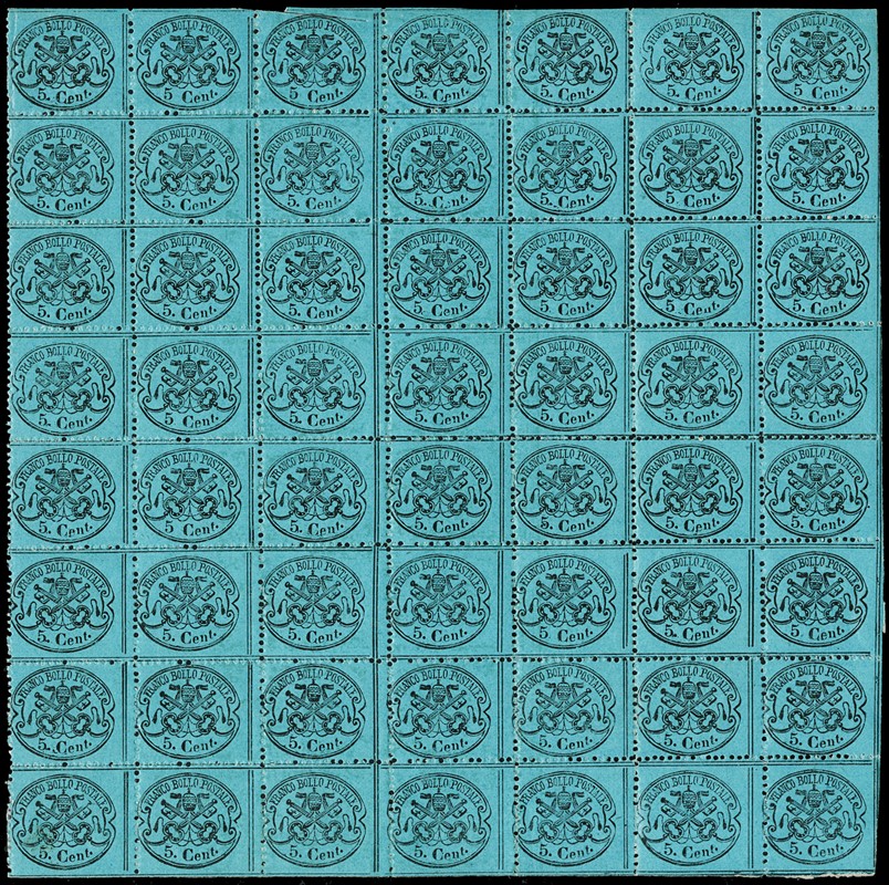 1868 - III emissione, 2c, 5c, 10c, 20c, 40c; insieme in blocchi da 56 esemplari nuovi TL e SL (Sassone 22, 25, 26, 28, 29 - Euro 27.995)