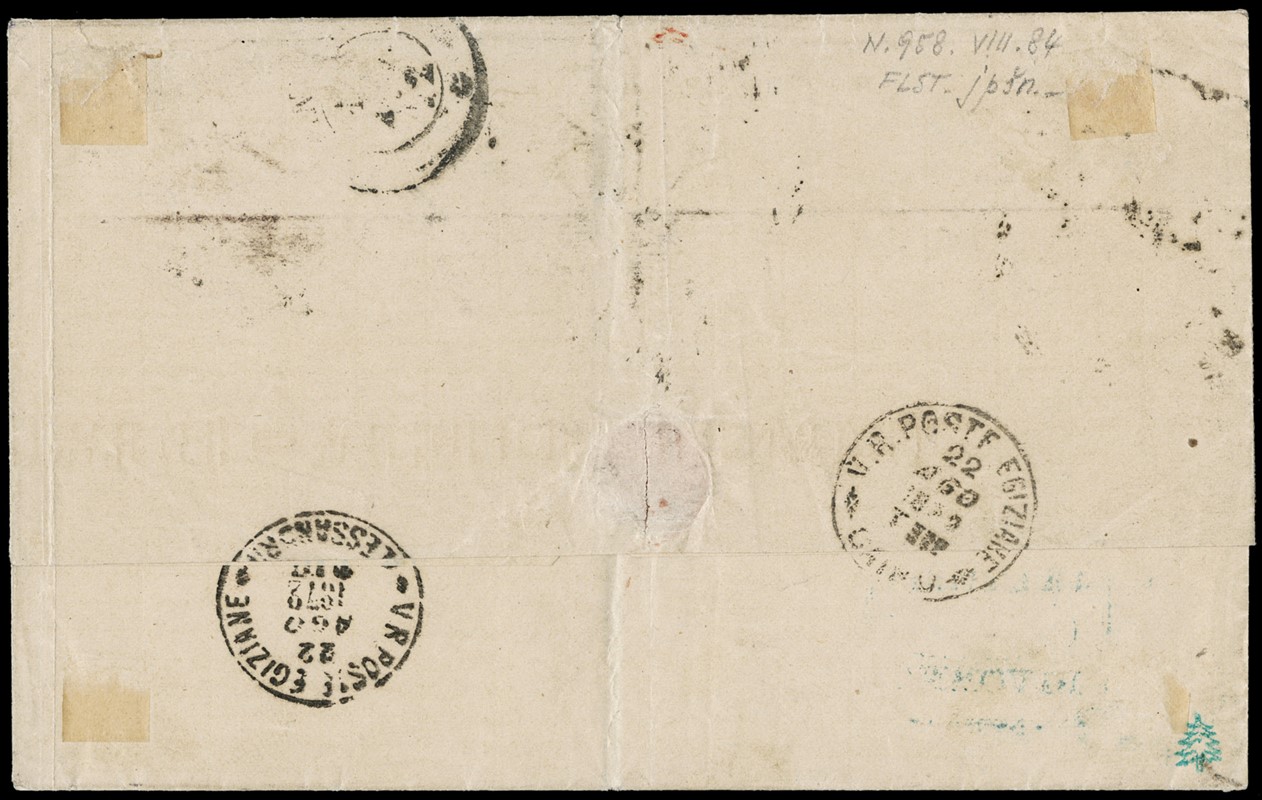 1872 - 40c carminio, DLR Torino, con Egitto 1p car