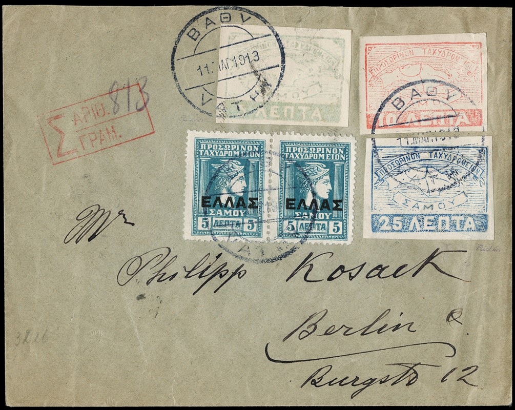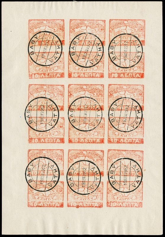 1878/1914 - TERRITORI GRECI - SAMO - PRINCIPATO E POSTA PROVVISORIA: collezione completa dei francobolli emessi dal Principato di Samos, fino all'annessione della Grecia, incluse le emissioni rare dello Stemma (1878) e del Principato (1900), fogli completi dell'emissione “Map' e tutte le emissioni rare successive fino al 1914. Comprese anche due buste e l'emissione delle Poste francesi di Samos (stima oltre Euro 16.500 + covers)