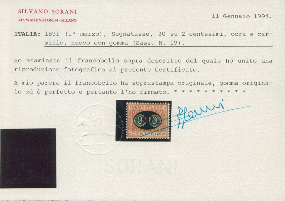 1890 - Mascherine, 30c su 2c ocra e carminio, discreta/buona centratura. CF Sorani (Sassone T19 - Euro 3.500+)