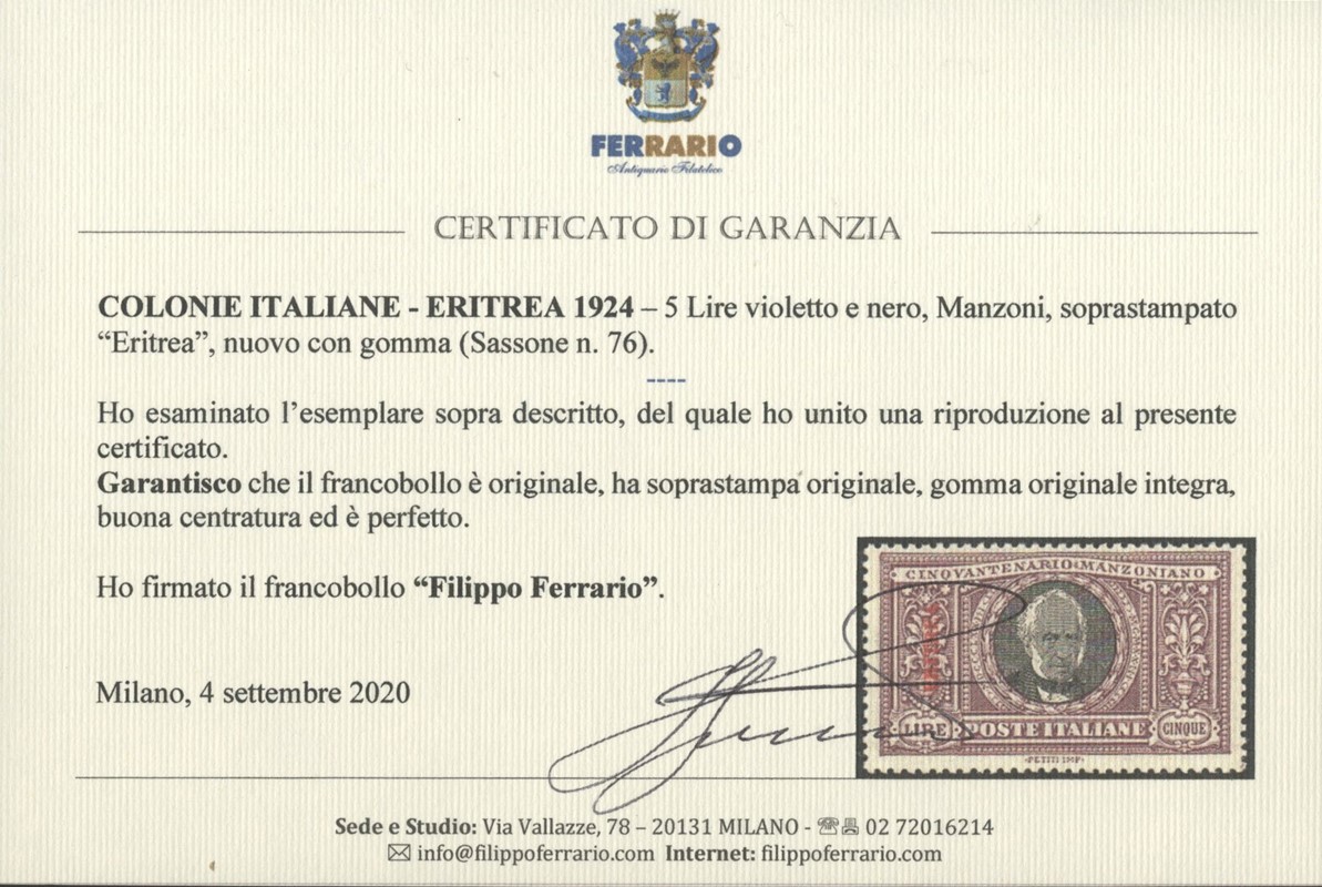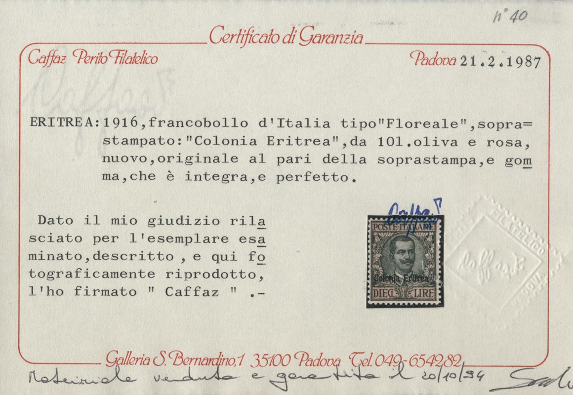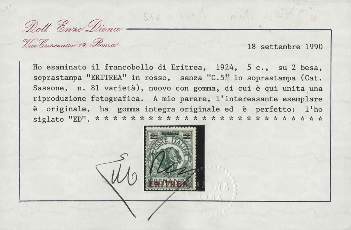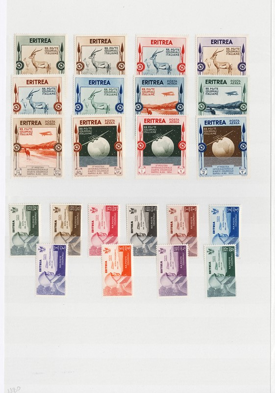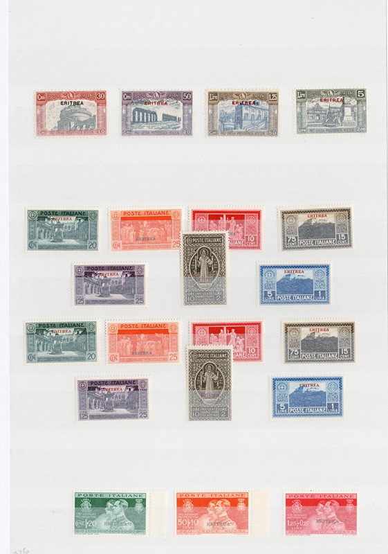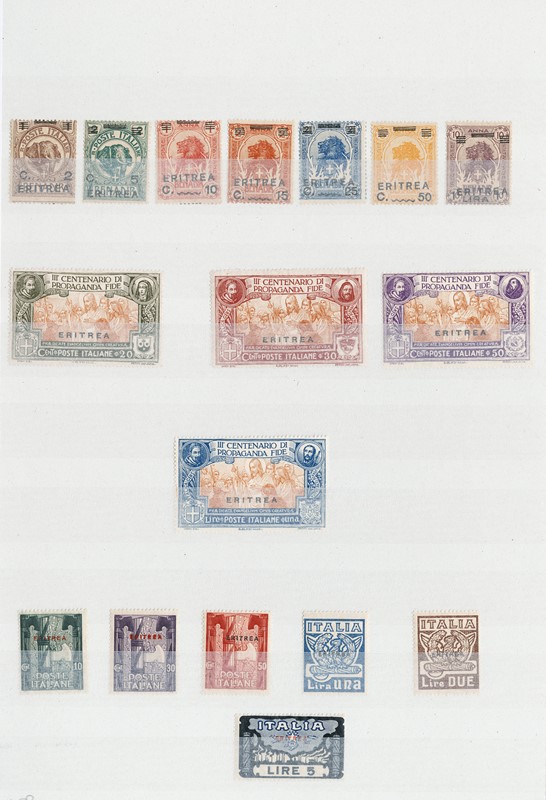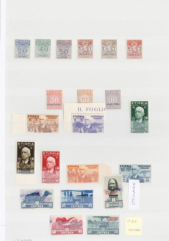 1893/1937 - COLONIE ITALIANE - ERITREA: collezione molto avanzata di francobolli nuovi, praticamente tutti SL tranne la Floreale e il 5L segnatasse, che ha piccoli punti gialli. Presente anche la serie di Etiopia. Notate due interessanti varieta'. Ottima