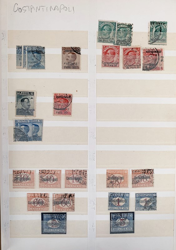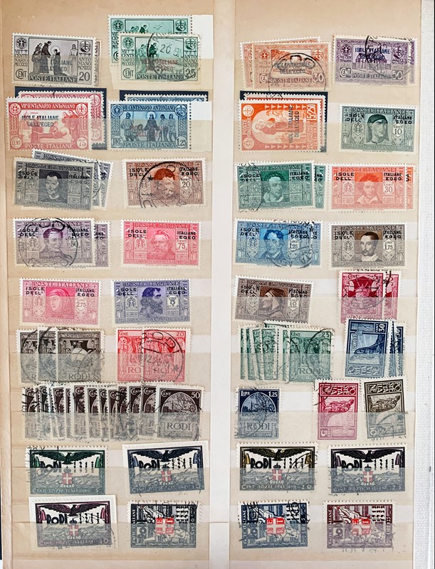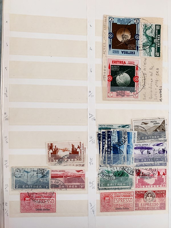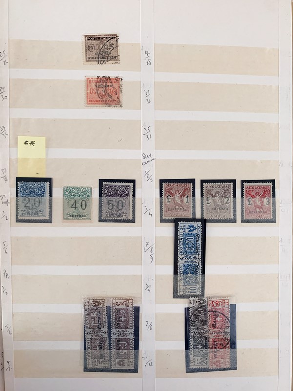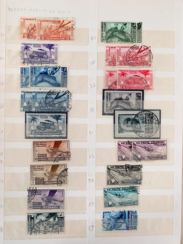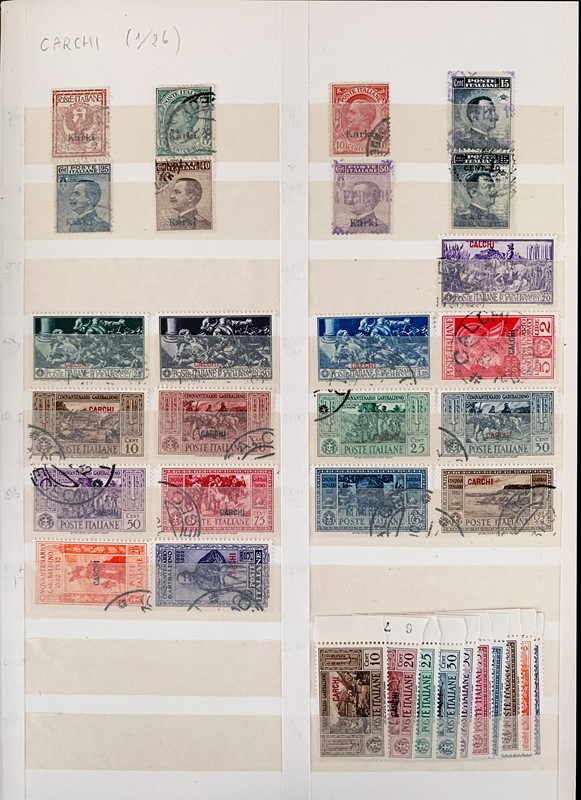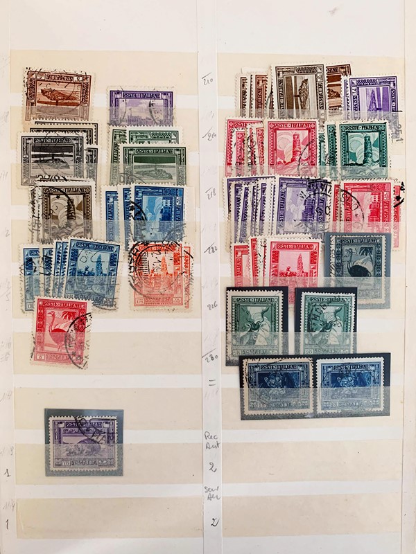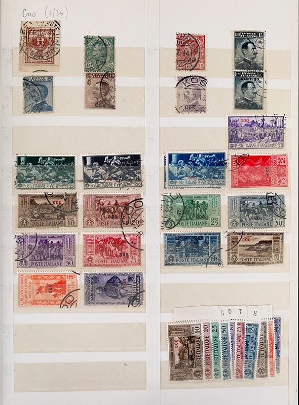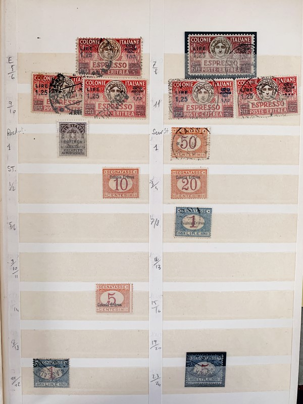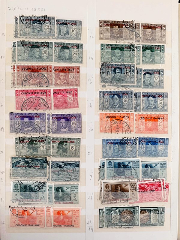 1893/1941 - AREA ITALIANA: insieme di diverse centinaia di francobolli, nuovi e usati, delle varie emissioni di Colonie e possedimenti italiani. Diverse interessanti presenze, alcune ripetizioni. Qualita' mista, in genere ottima. Altissimo valore di catalogo, tutto raccolto in tre classificatori. 1 CF A.Bolaffi