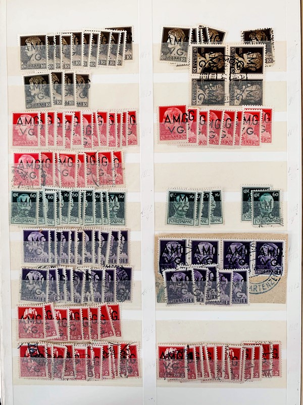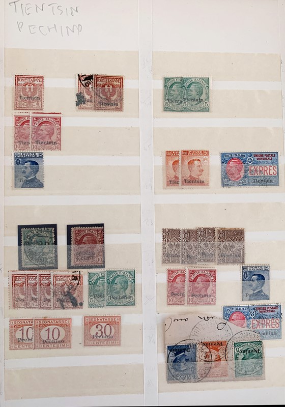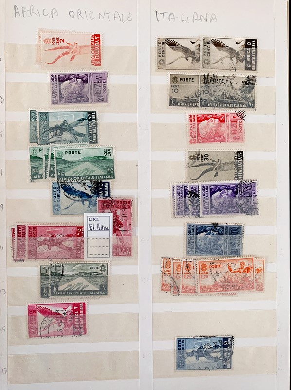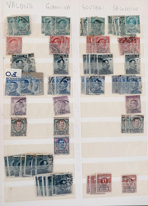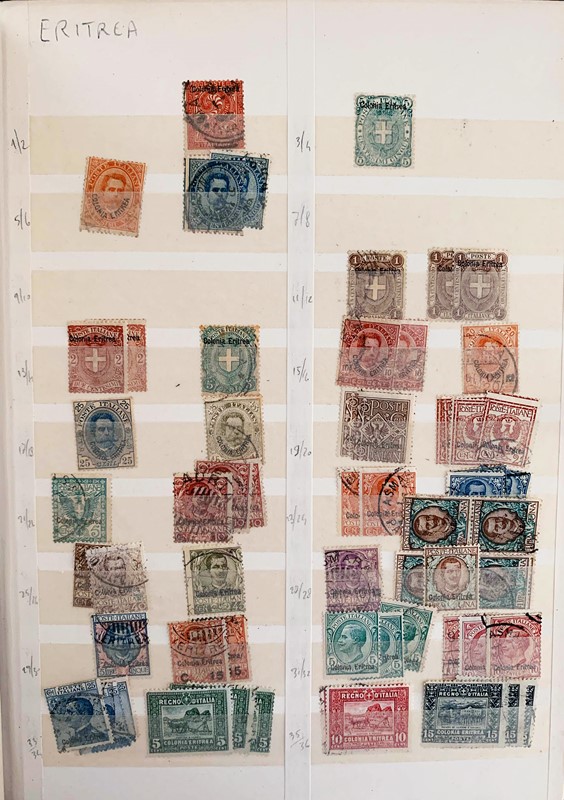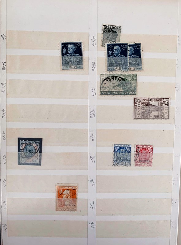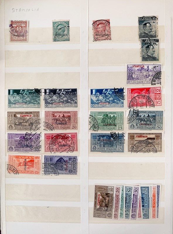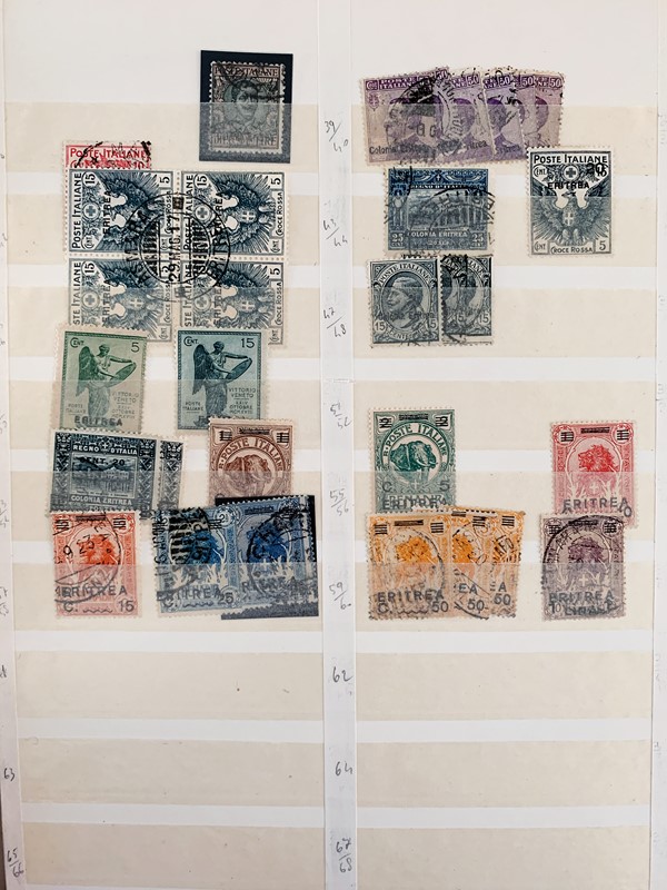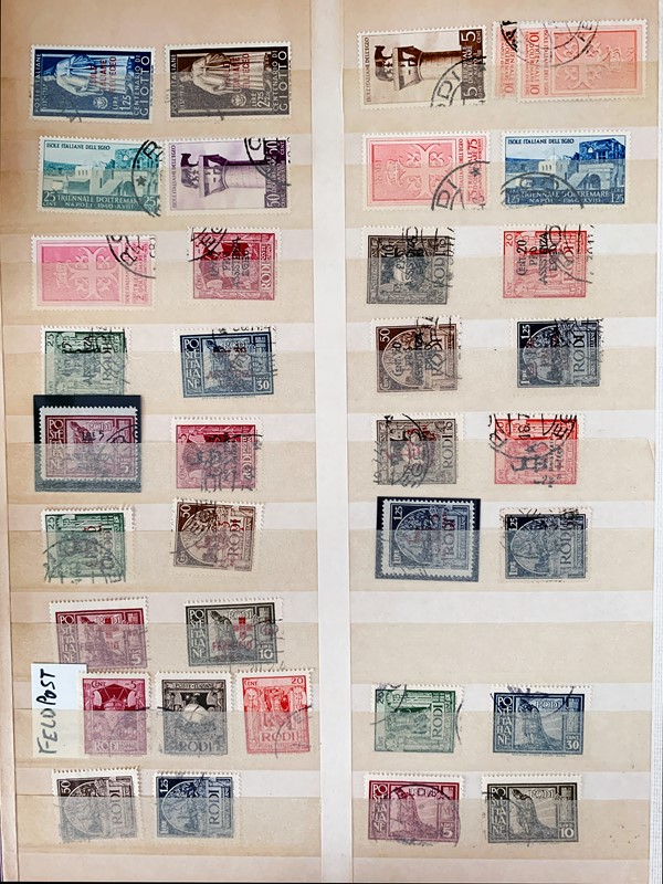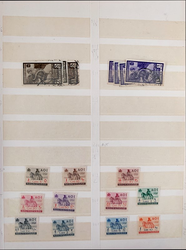1893/1941 - AREA ITALIANA: insieme di diverse centinaia di francobolli, nuovi e usati, delle varie emissioni di Colonie e possedimenti italiani. Diverse interessanti presenze, alcune ripetizioni. Qualita' mista, in genere ottima. Altissimo valore di catalogo, tutto raccolto in tre classificatori. 1 CF A.Bolaffi