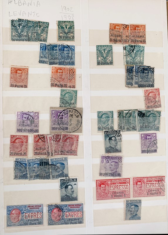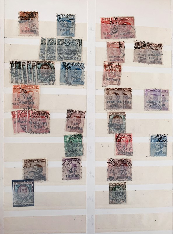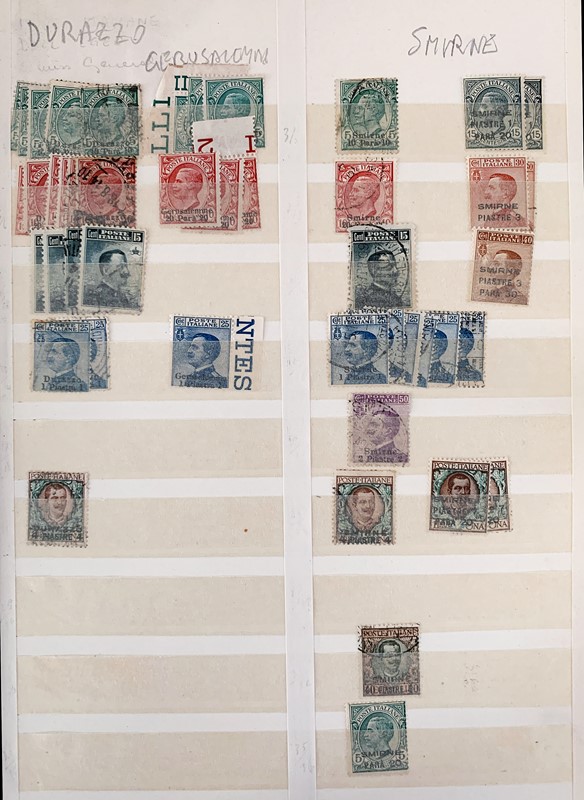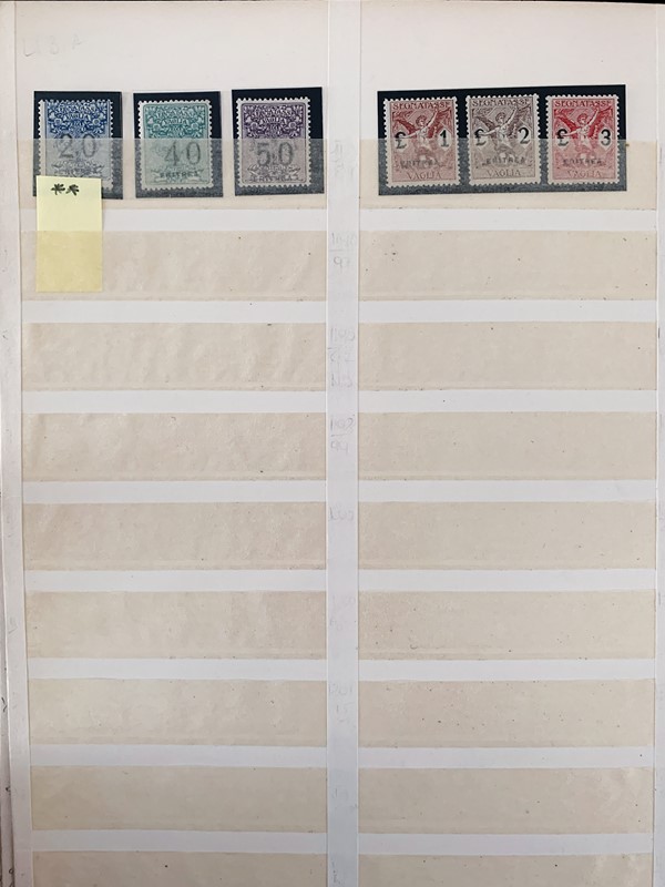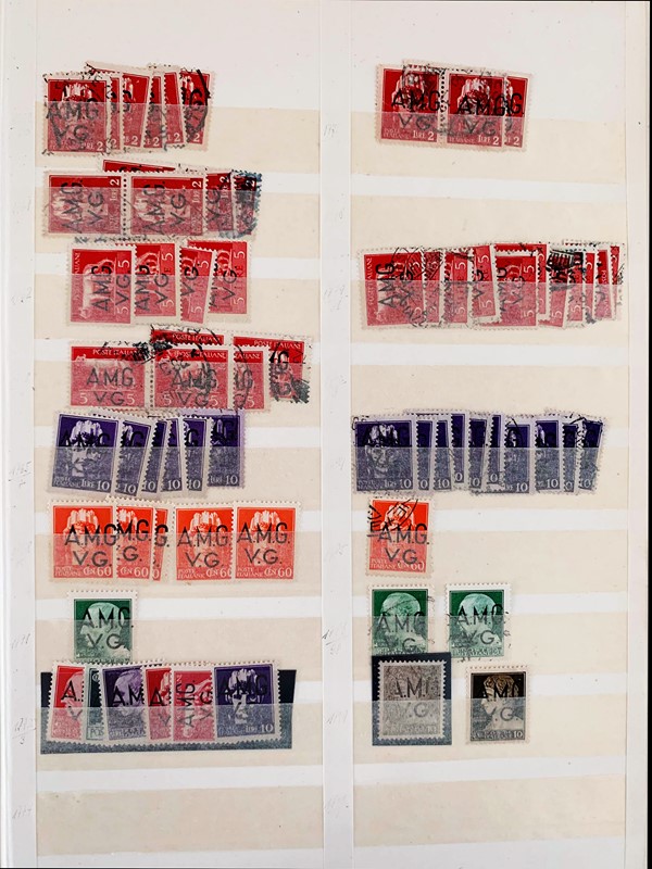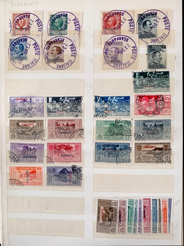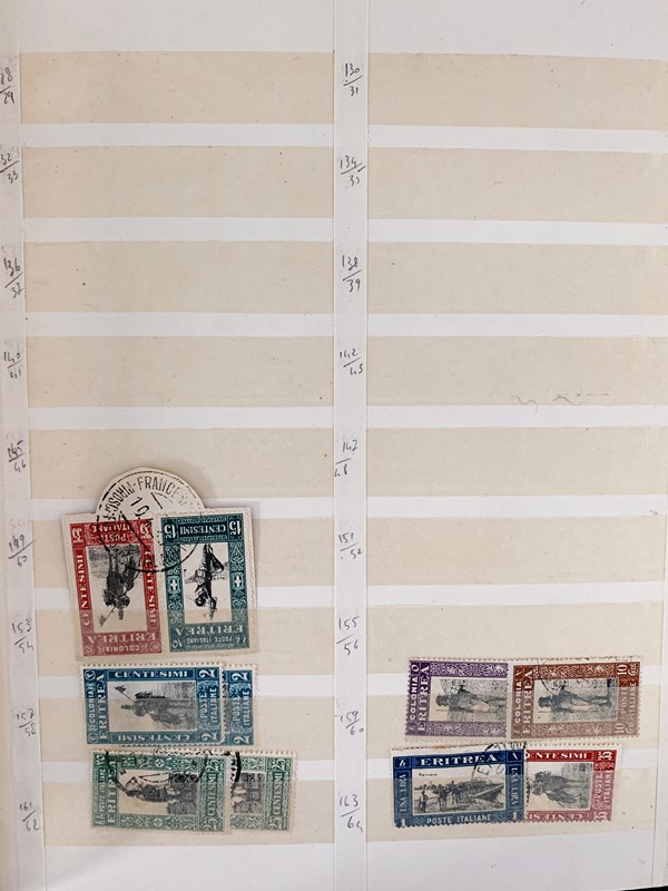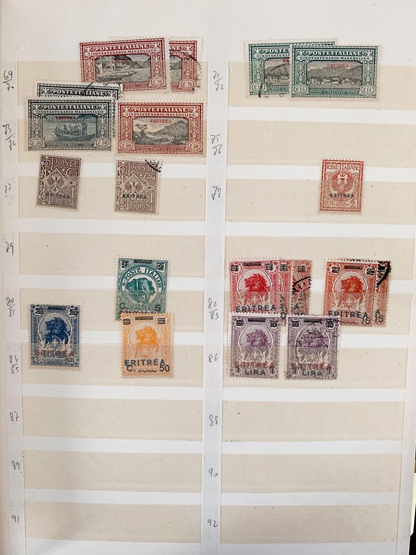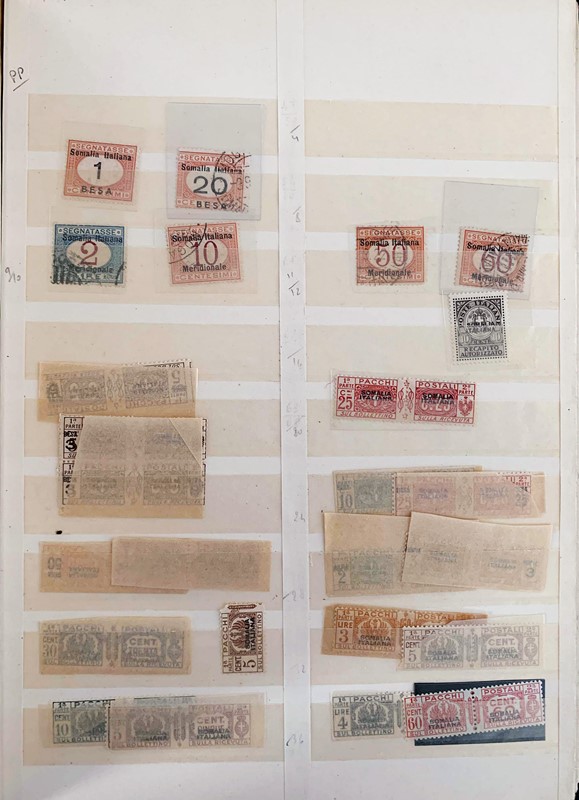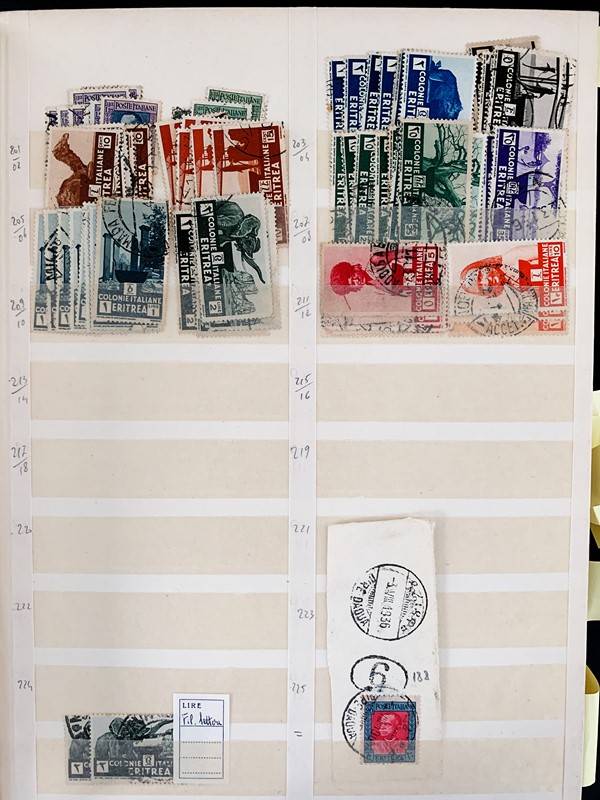 1893/1941 - AREA ITALIANA: insieme di diverse centinaia di francobolli, nuovi e usati, delle varie emissioni di Colonie e possedimenti italiani. Diverse interessanti presenze, alcune ripetizioni. Qualita' mista, in genere ottima. Altissimo valore di catalogo, tutto raccolto in tre classificatori. 1 CF A.Bolaffi